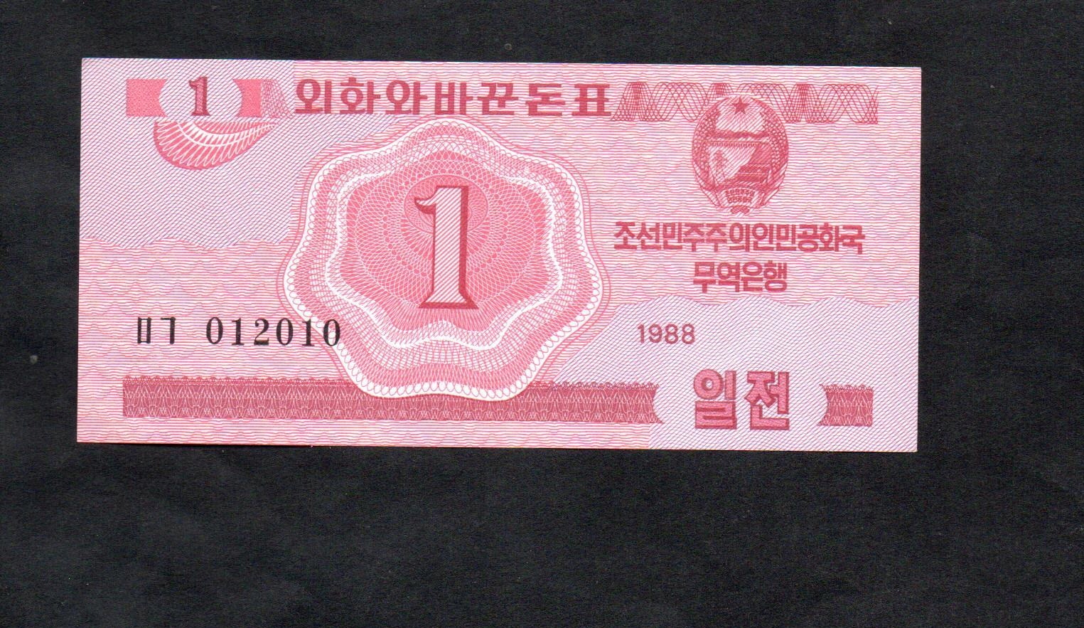 БАНКНОТА ПІВНІЧНОЇ КОРЕЇ -- 1 ЧОН -- 1988, UNC
