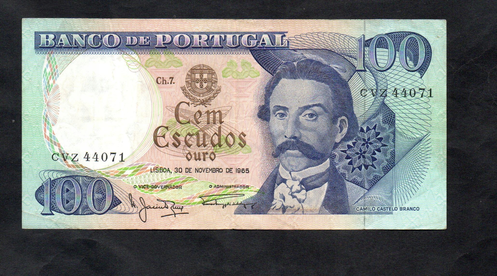 БАНКНОТА ПОРТУГАЛІЇ -- 100 ЕСКУДО -- 1965 РОКУ