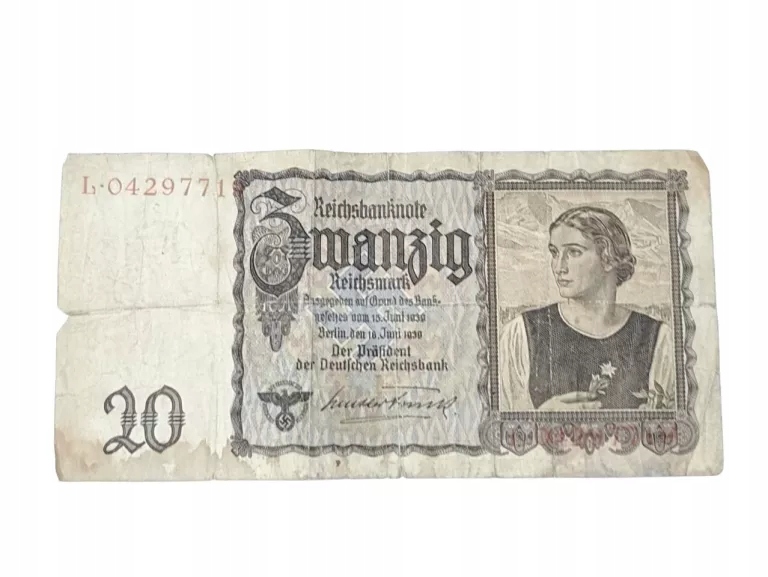 БАНКНОТА РЕЙХА 20 МАРОК ГЕРМАНИИ 1939 ГОДА
