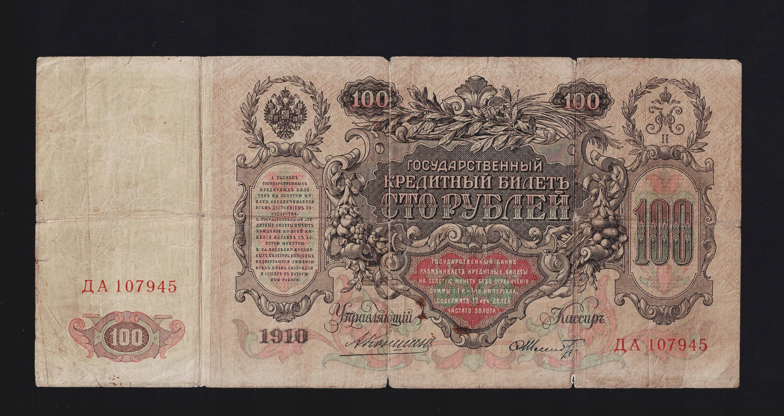 БАНКНОТА РОССИИ -- 100 рублей -- 1910 г., КОНШИН - ШМИДТ