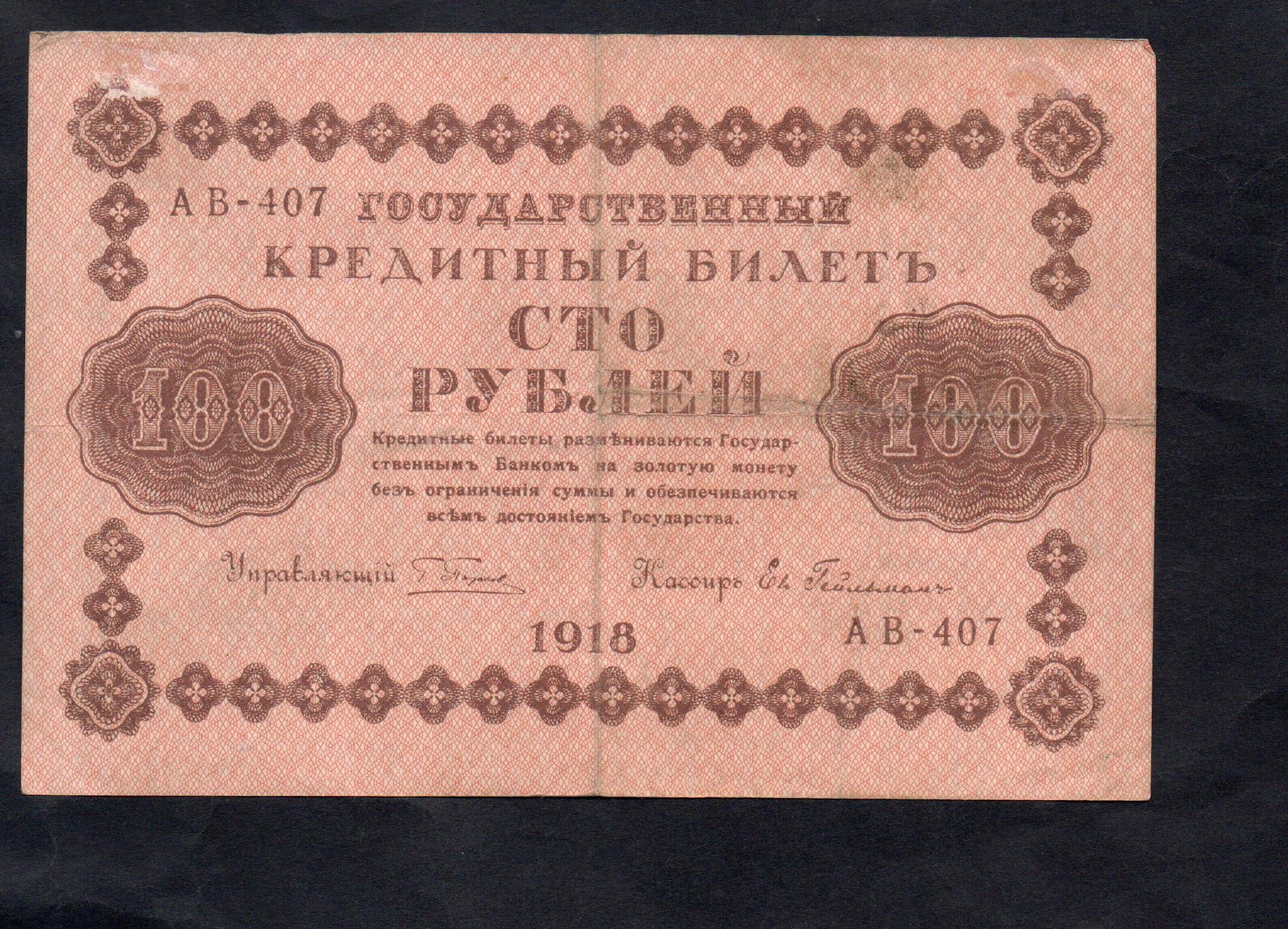 БАНКНОТА РОСІЇ -- 100 рублів -- 1918 р