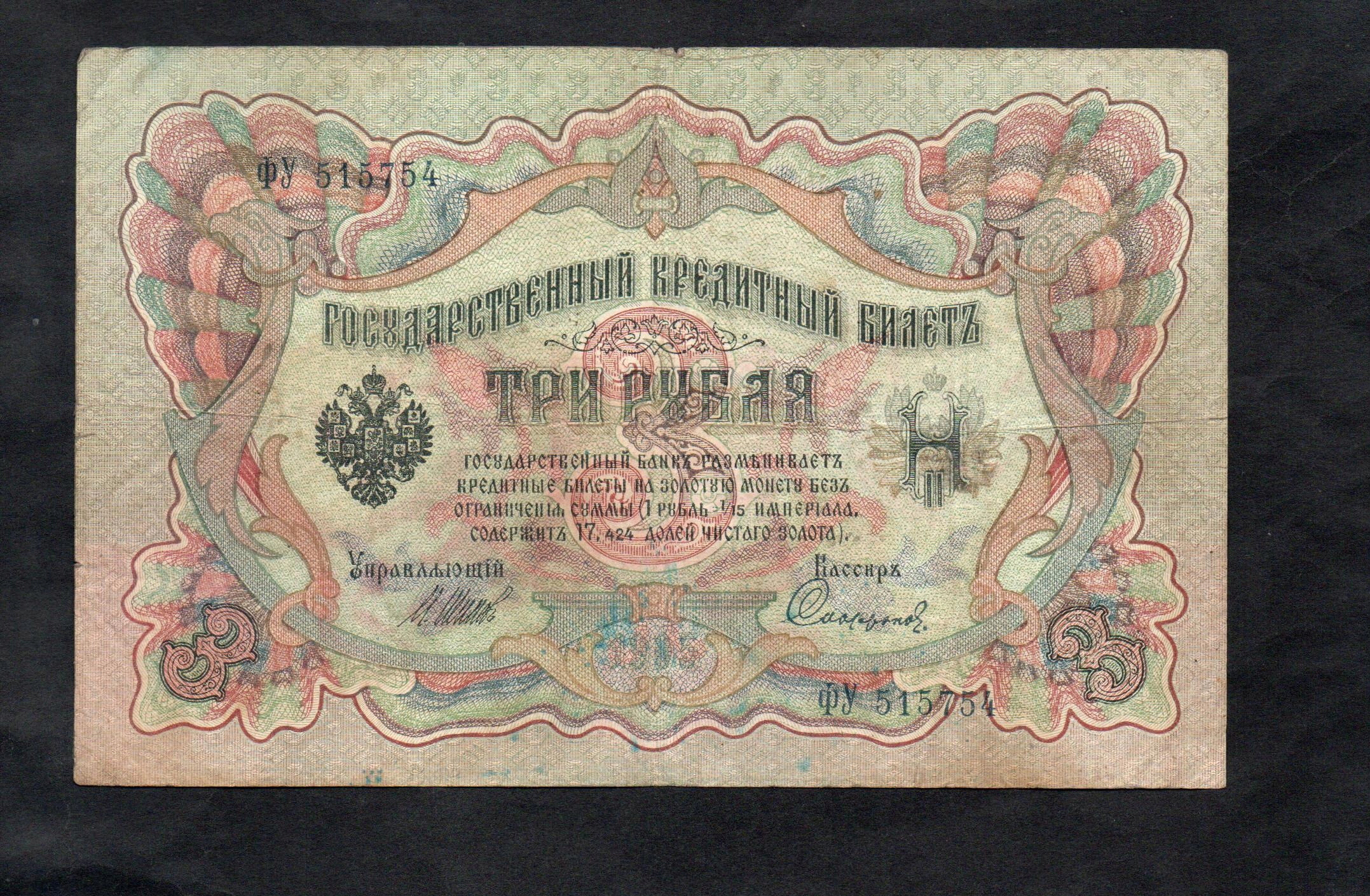 БАНКНОТА РОСІЇ -- 3 рублі -- 1905, КОНШИН - СОФРОНОВ