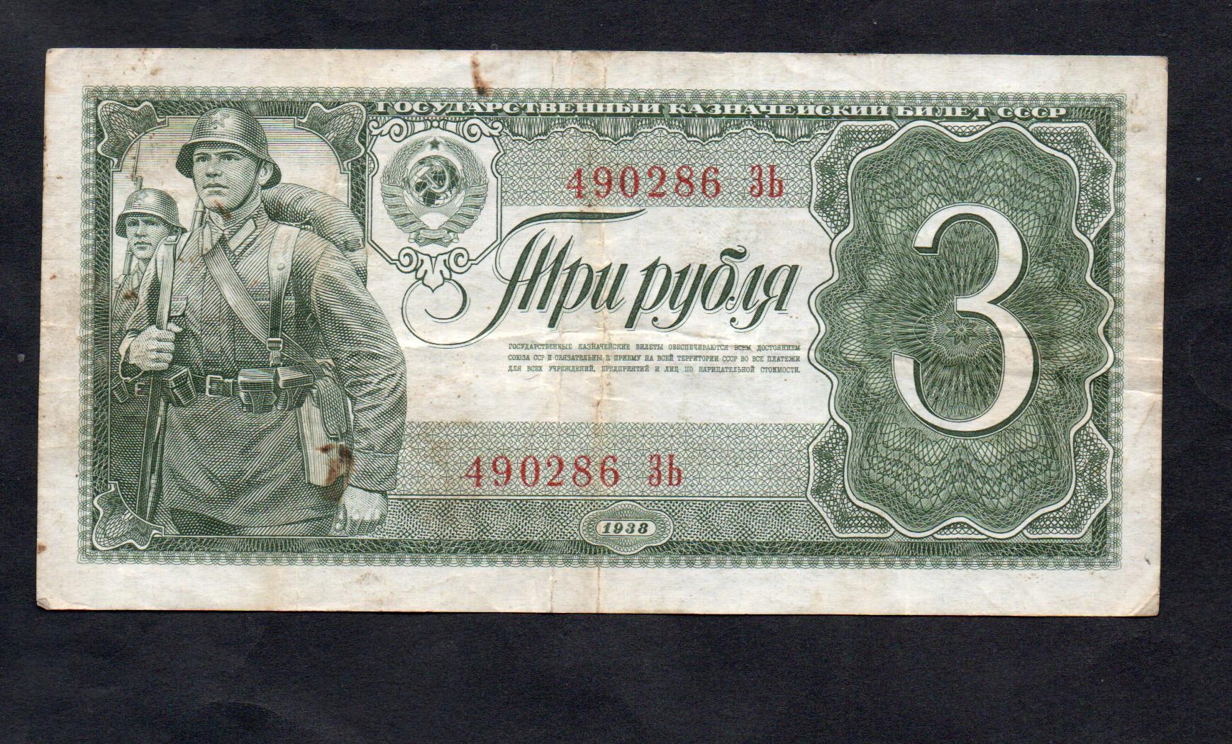 БАНКНОТА РОСІЇ -- 3 рублі -- 1938 р
