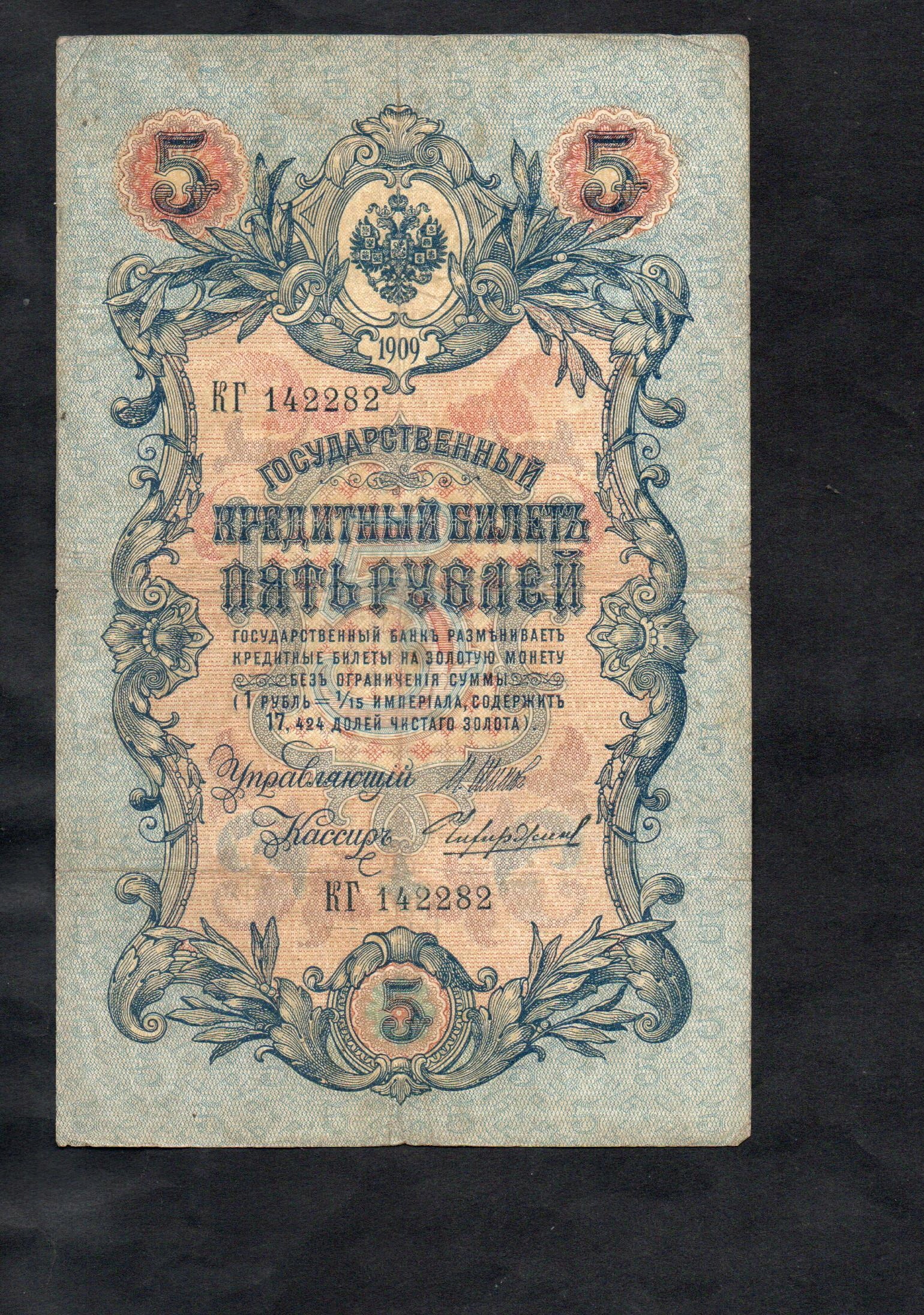 БАНКНОТА РОСІЇ -- 5 рублів -- 1909, ШИПОВ - ЧИЧИРЖІН