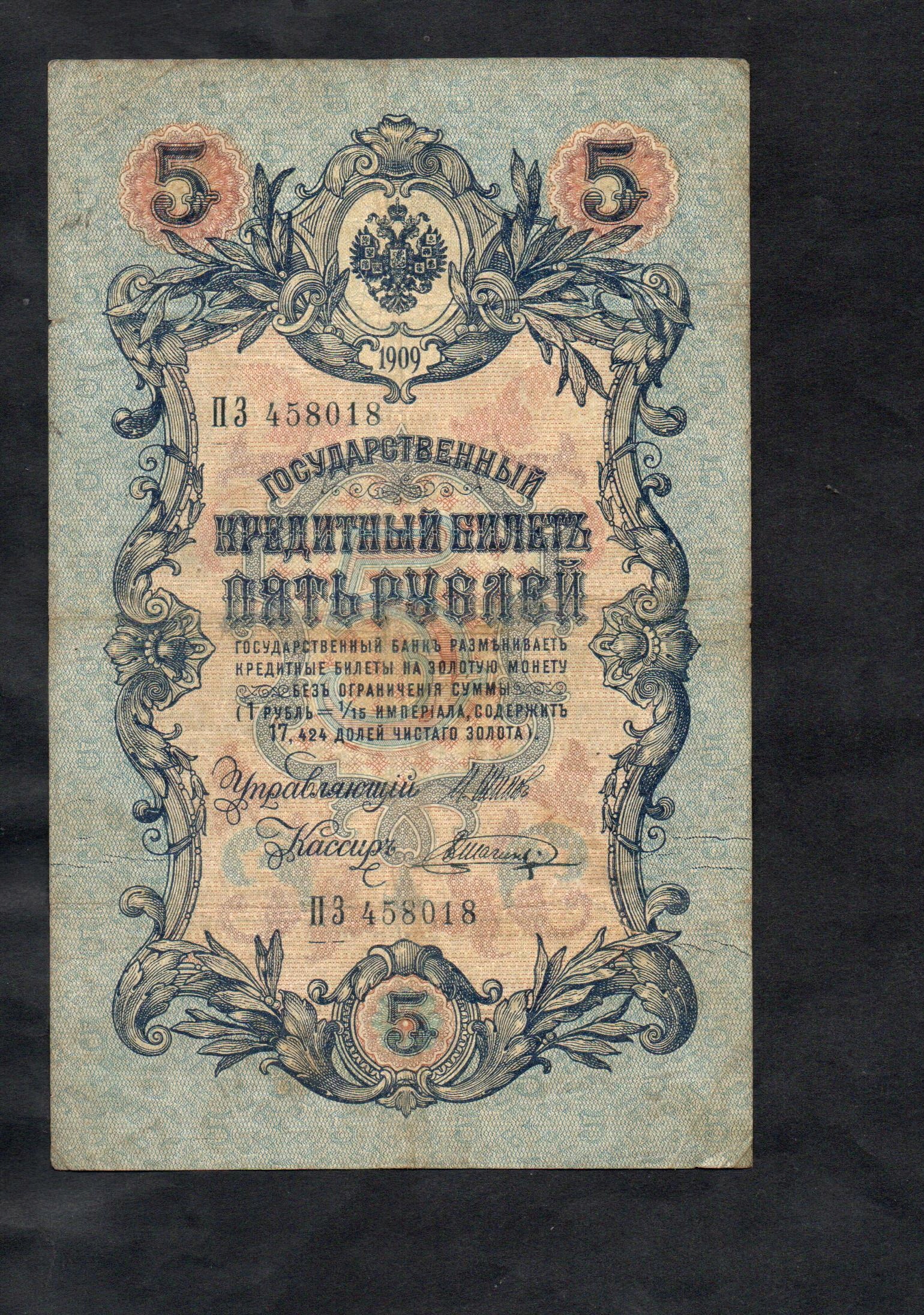 БАНКНОТА РОСІЇ -- 5 рублів -- 1909, SHIPOW - SHAGIN
