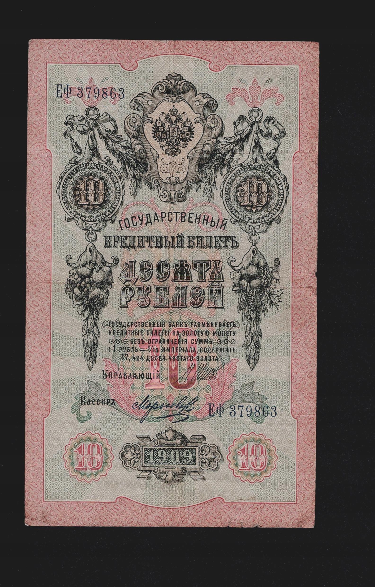 БАНКНОТА РОСІЯ -- 10 Рублів -- 1909 рік, ШИПОВ - МОРОЗОВ