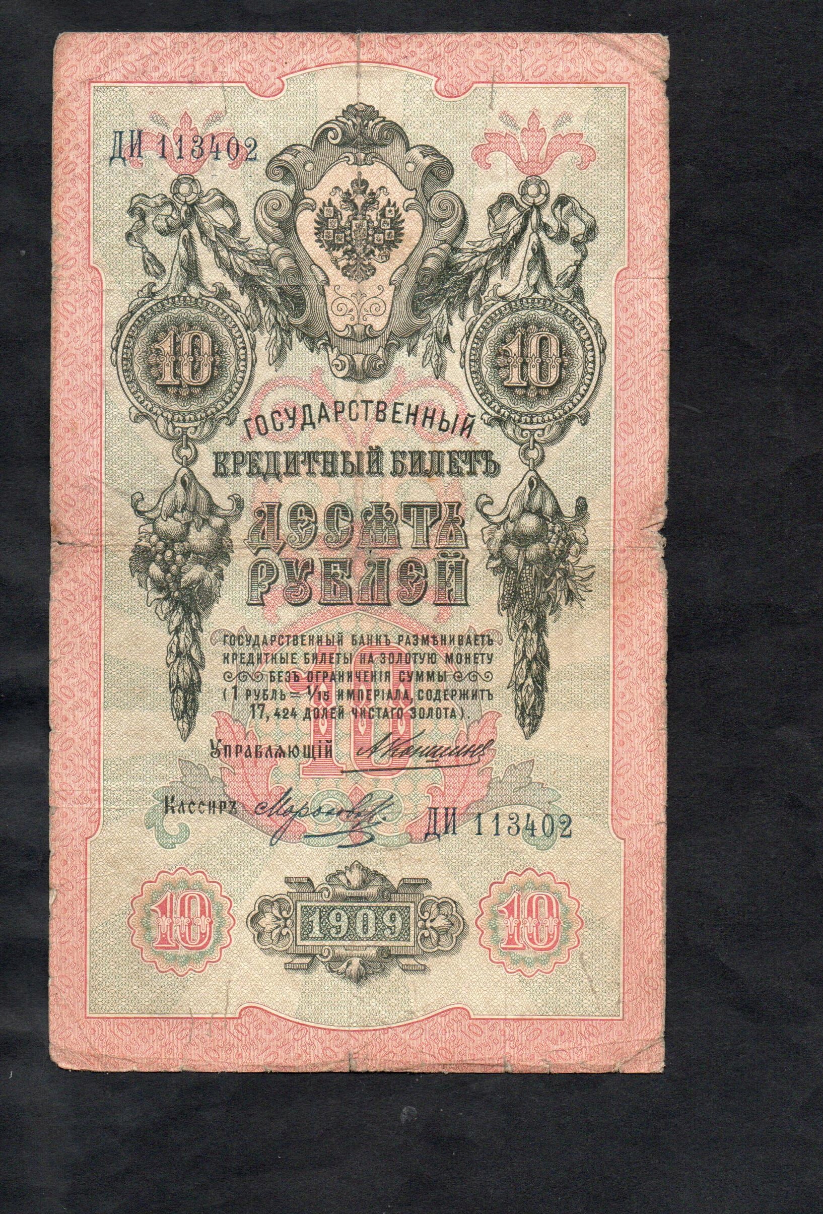 БАНКНОТА РОСІЯ -- 10 рублів 1909 р., КОНШИН - МОРОЗОВ
