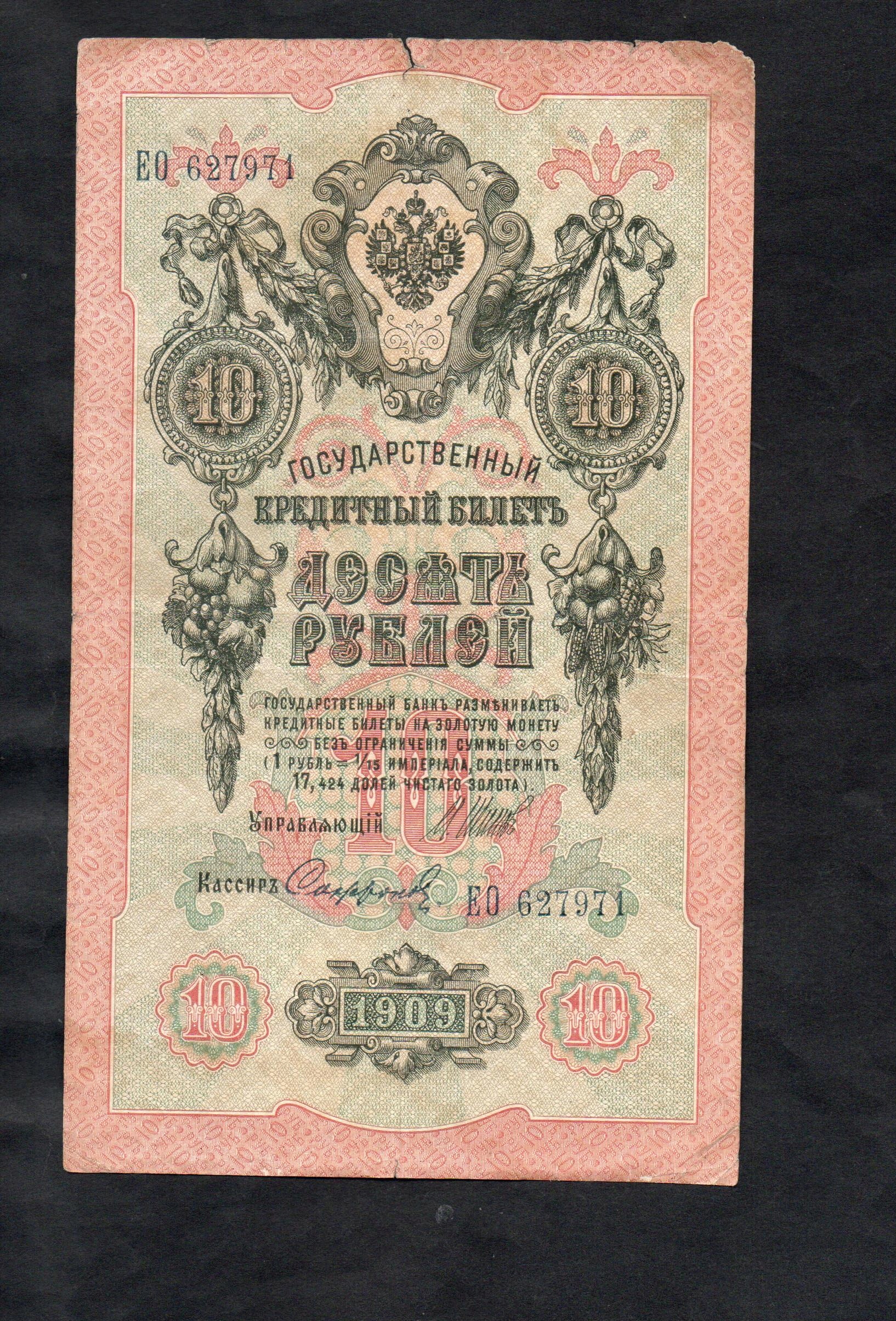 БАНКНОТА РОСІЯ -- 10 рублів 1909 р., КОРАБЕЛЬ - СОФРОНОВ