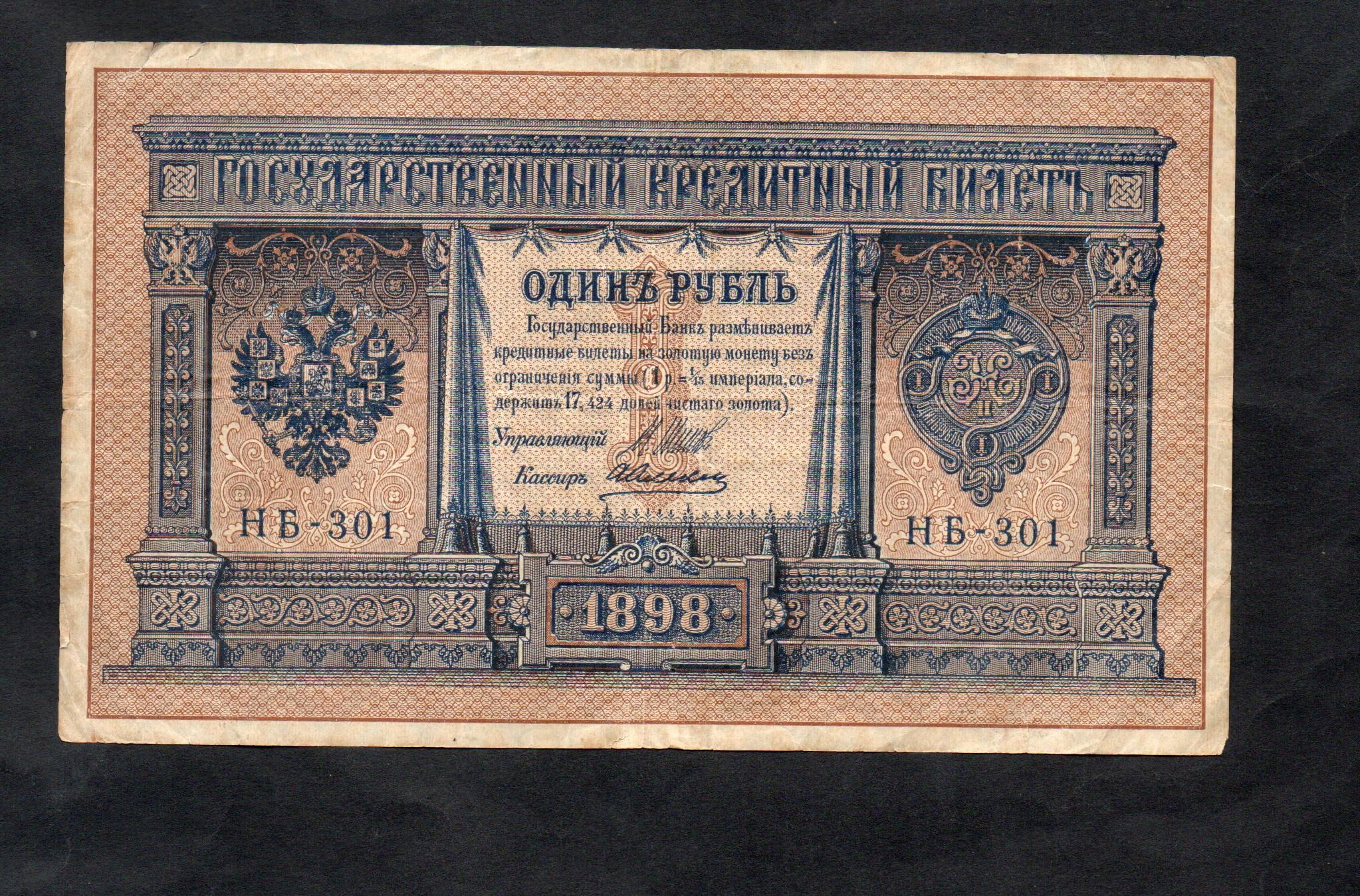 БАНКНОТА РОСІЯ - 1 рубль 1898 р., ШИПОВ-АЛЕКСЄЄВ