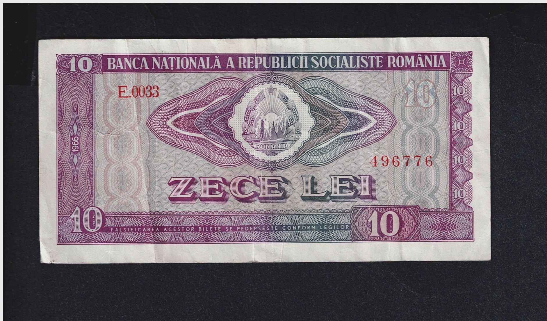 БАНКНОТА РУМЫНИИ, 10 лей, 1966 г.