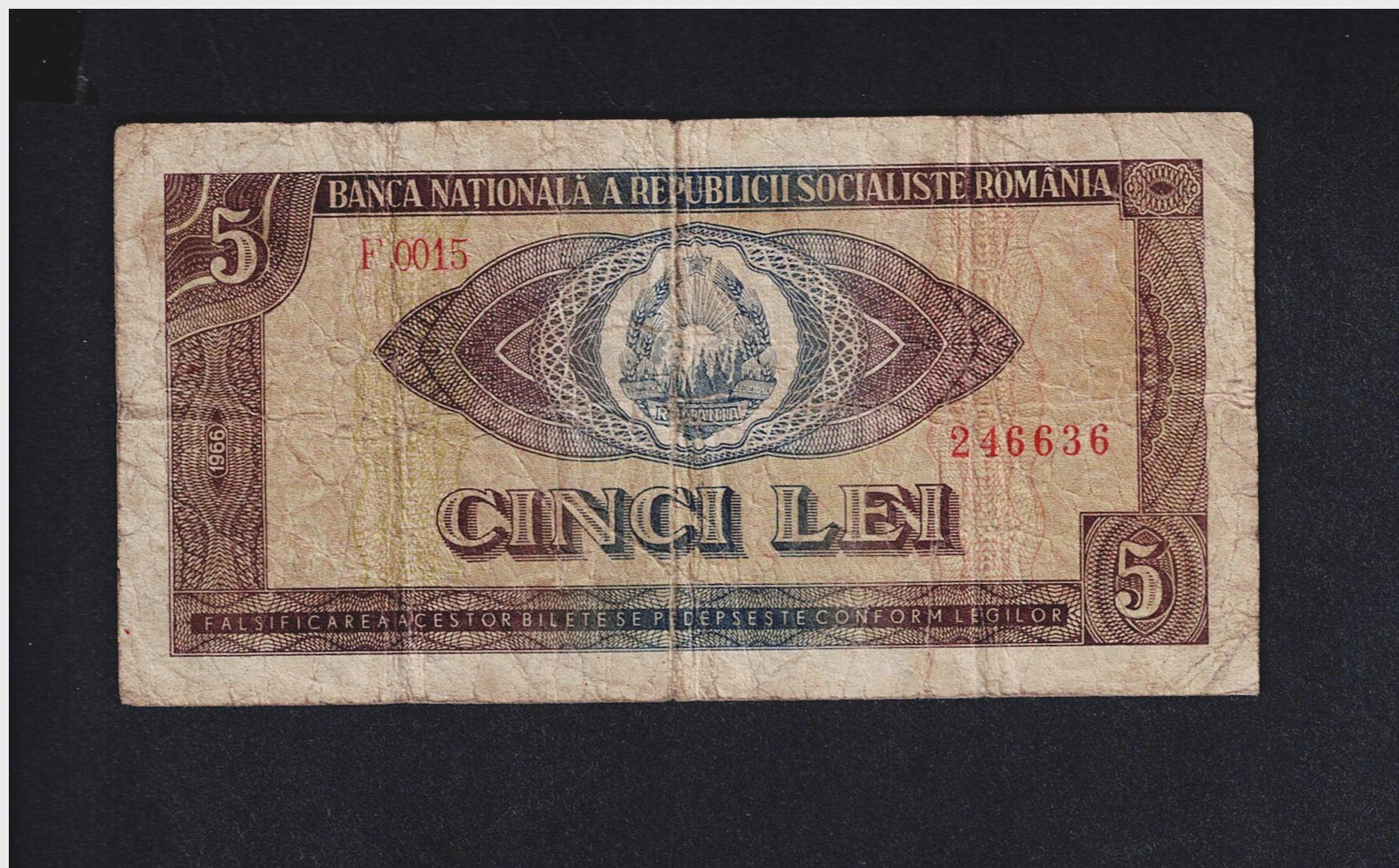 БАНКНОТА РУМЫНИИ, 5 Лей, 1966 г.