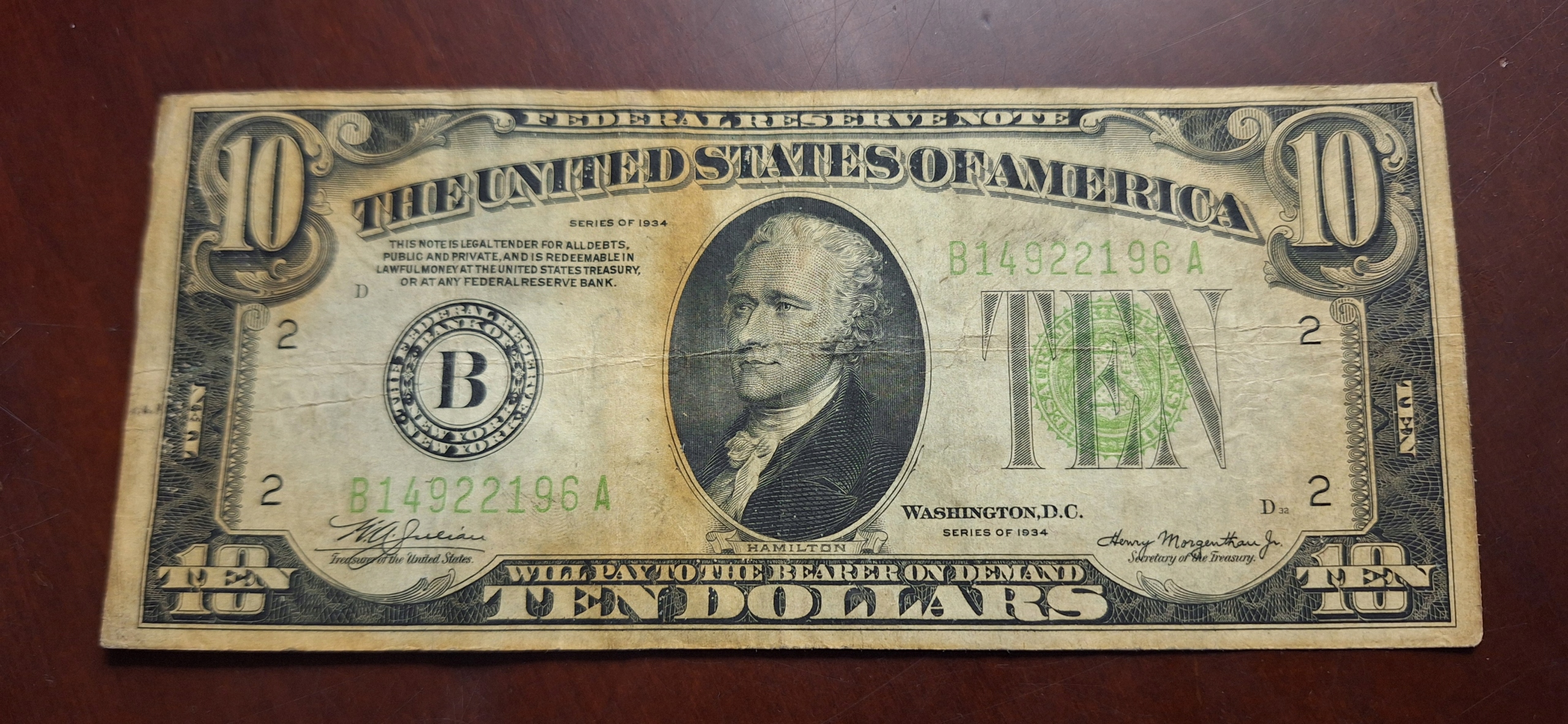 Американская банкнота $ 10 1934 New York Year Eder Green Seal