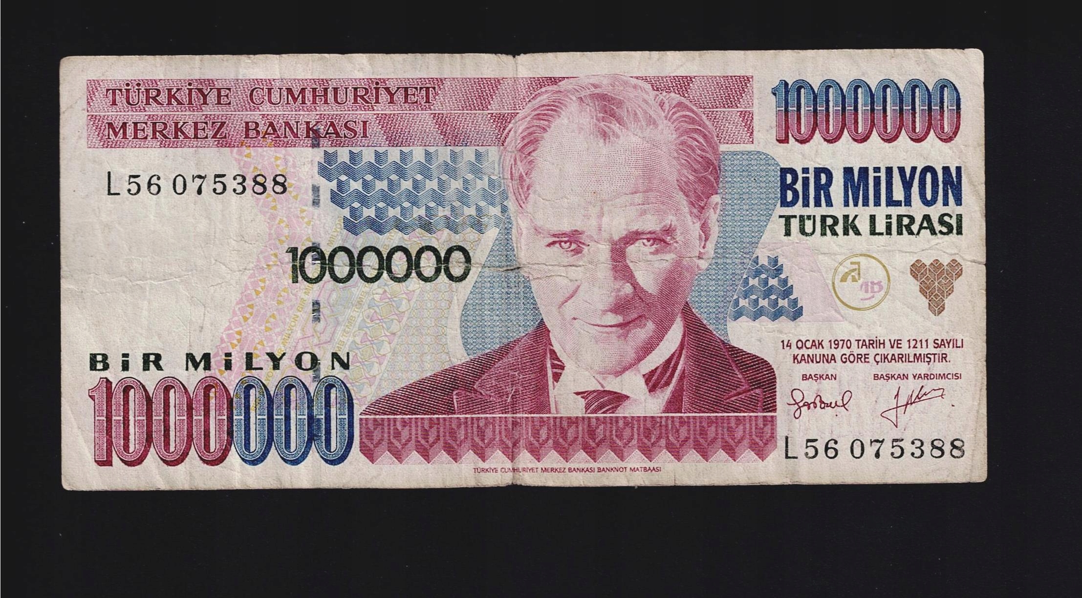 БАНКНОТА Тюркие — 1 000 000 лираси — 1970 год.