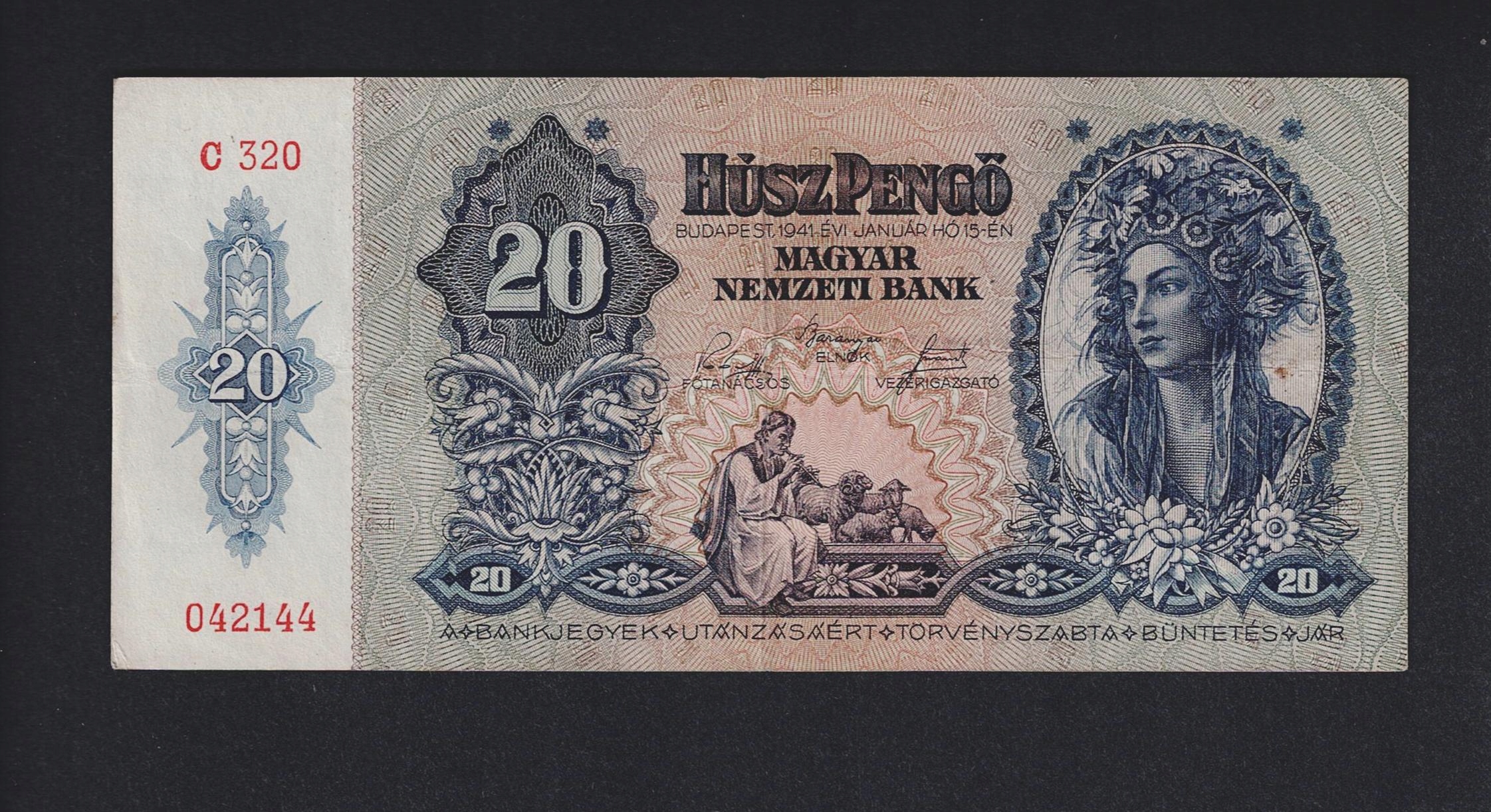 БАНКНОТА УГОРЩИНА -- 20 пенго -- 1941 рік