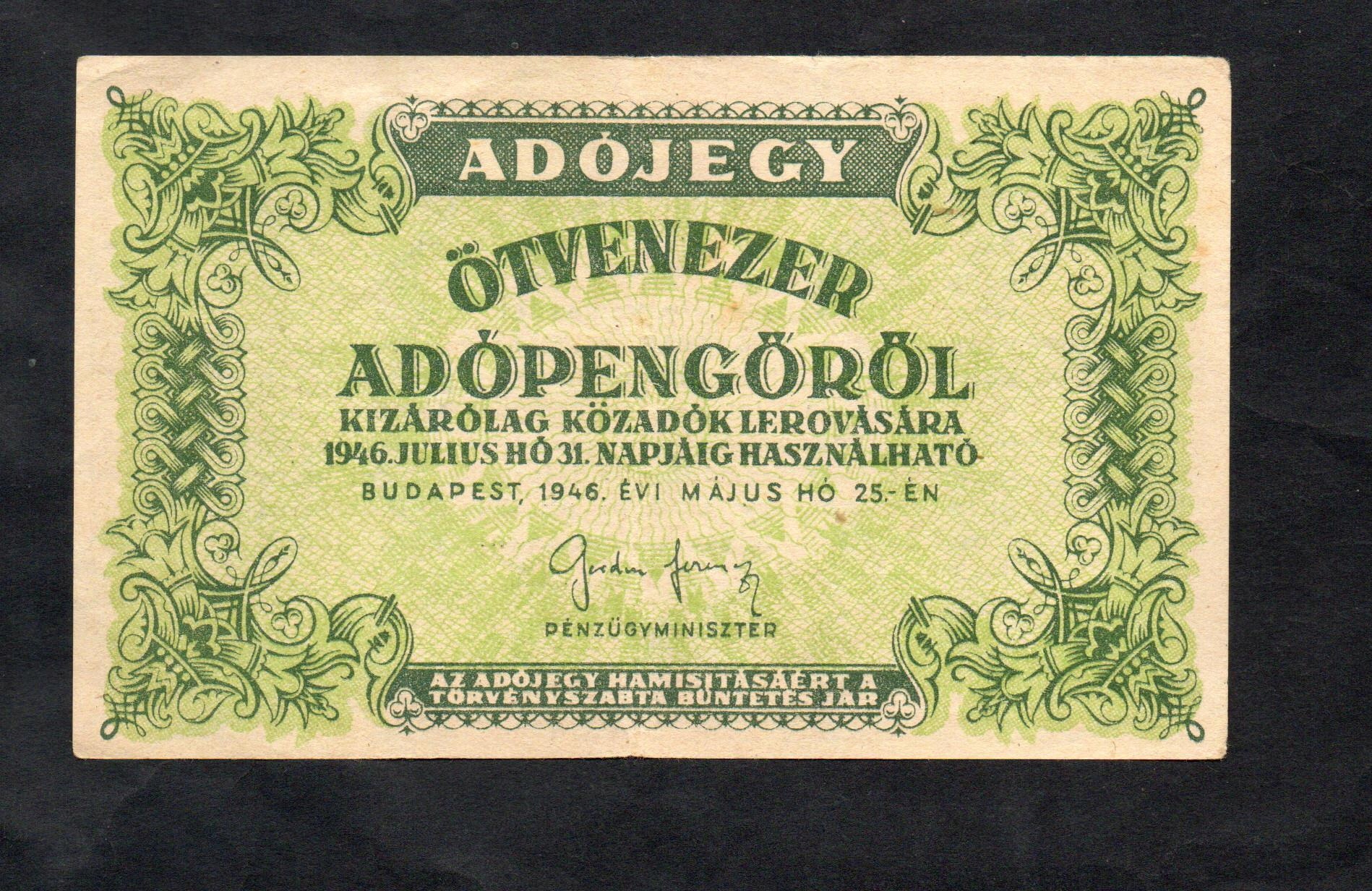 БАНКНОТА УГОРЩИНИ -- 50 000 адопенго -- 1946 рік