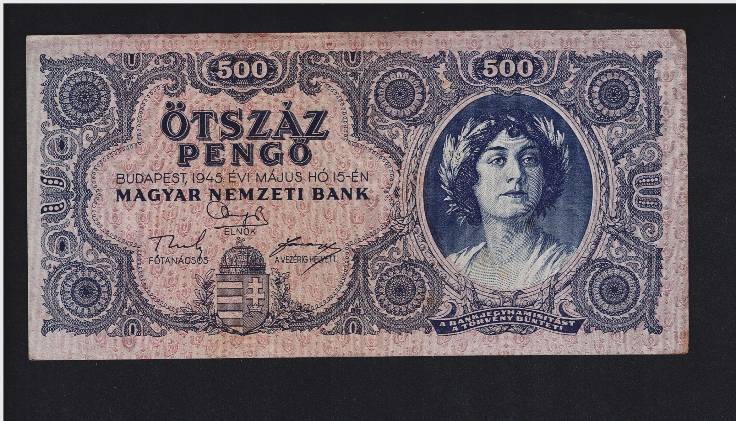 БАНКНОТА УГОРЩИНИ -- 500 пенго -- 1945 рік