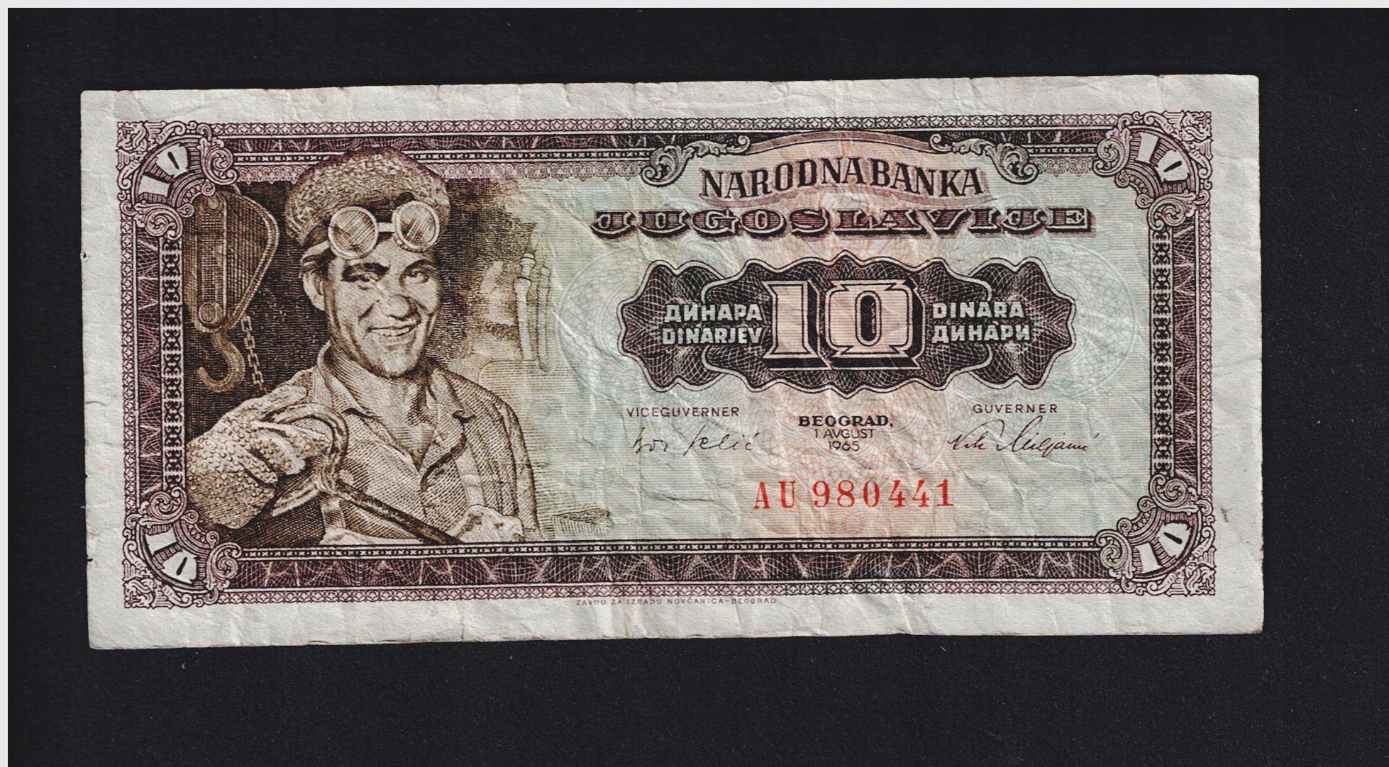 БАНКНОТА ЮГОСЛАВІЯ -- 10 ДИНАРІВ -- 1965 рік