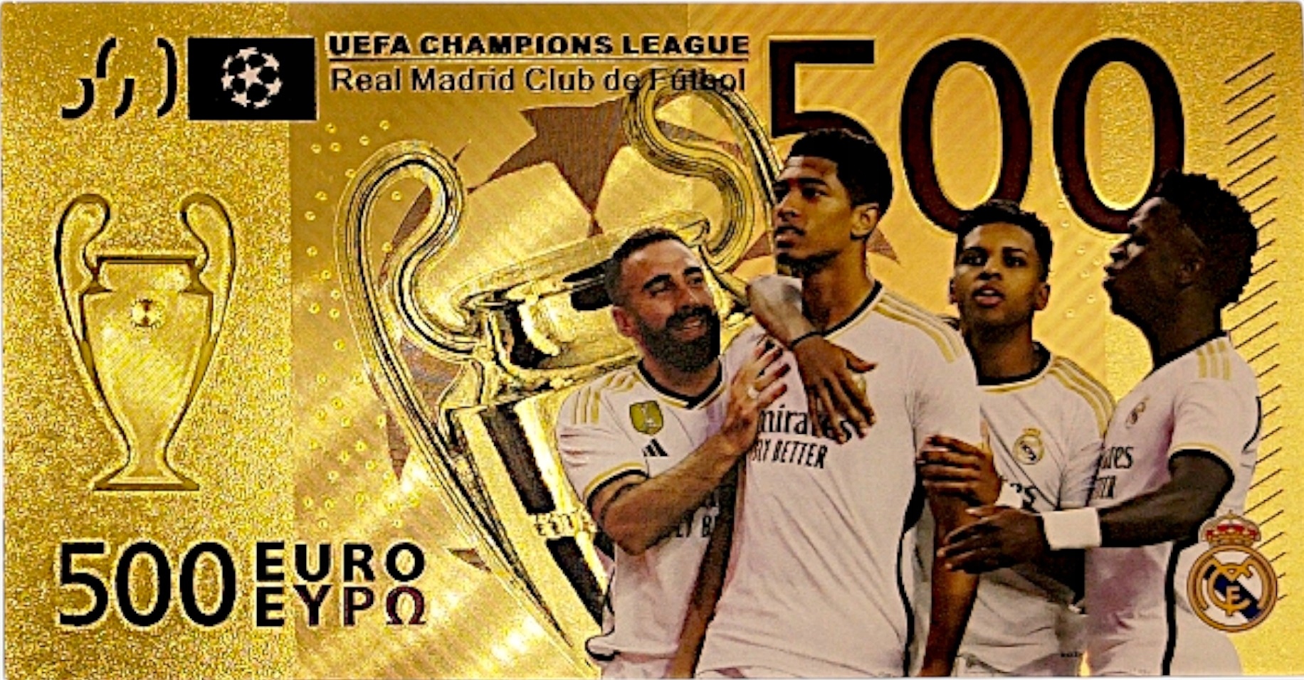 Уникальная возможность получить что-то особенное — позолоченную банкноту, посвященную «Реалу».