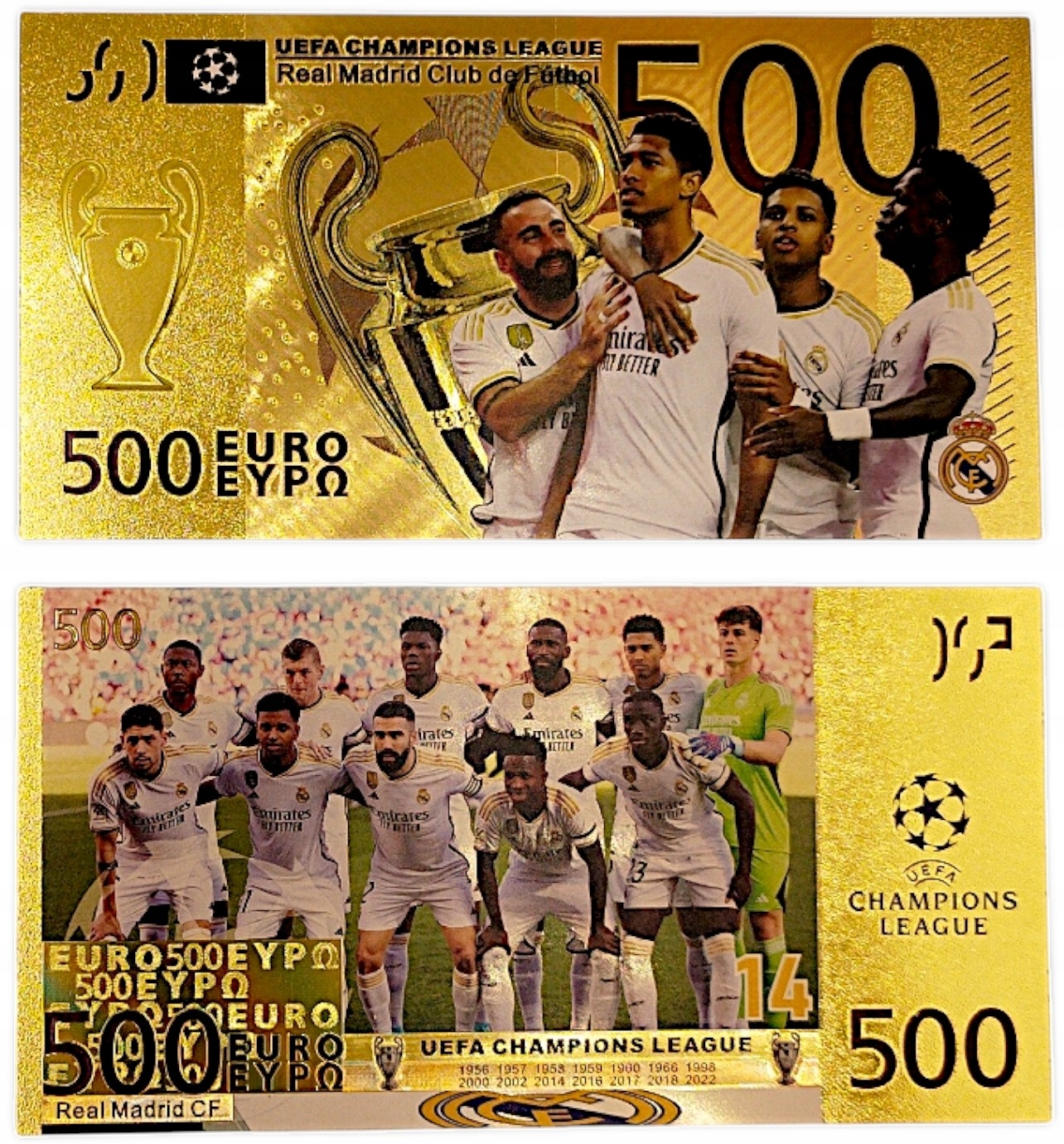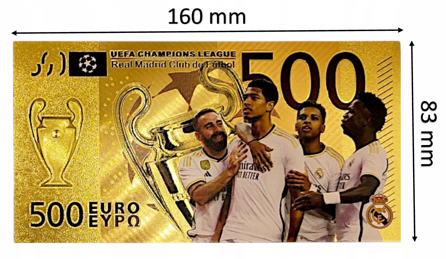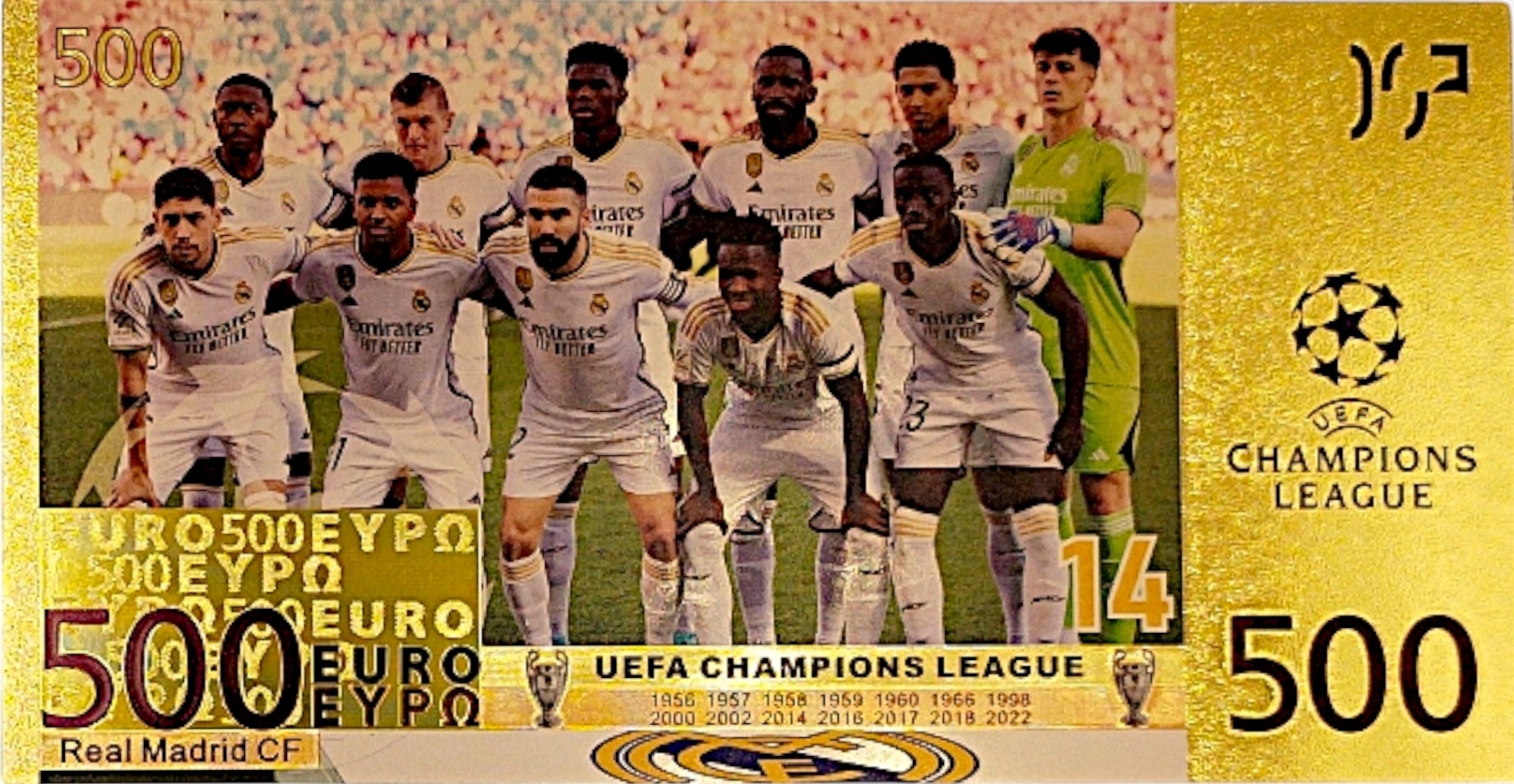 КРАСИВАЯ ПОЗОЛОЧЕННАЯ КОЛЛЕКЦИОННАЯ БАНКНОТА ПВХ «Реал Мадрид»
