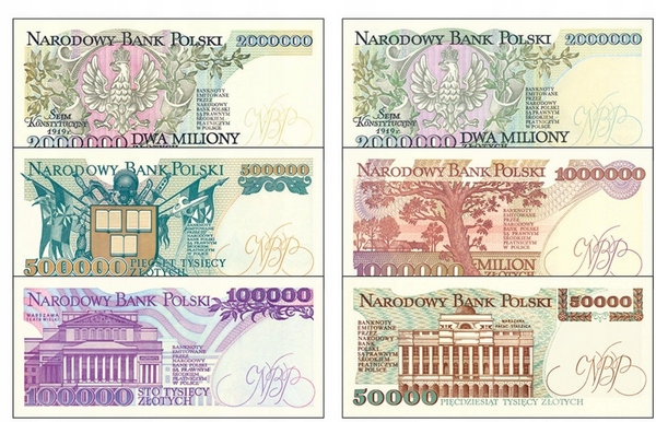 БАНКНОТЫ PRL - 500 000 PLN - 2 000 000 PLN 5 ШТ. - КОПИИ