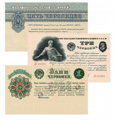 Предмет аукциона - набор3 экз. банкноты 1924 года