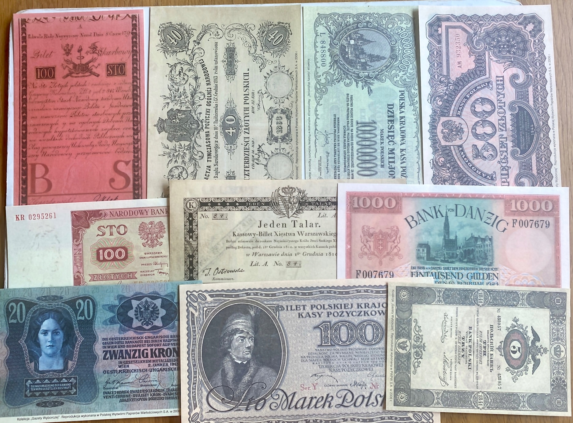 "Польские банкноты" - образовательная серия, посвященная экономической истории Польши и польских денег. Издано в 22 многостраничных блокнотах - каждый блокнот будет сопровождаться точной репродукцией одной из польских банкнот рассматриваемого периода.