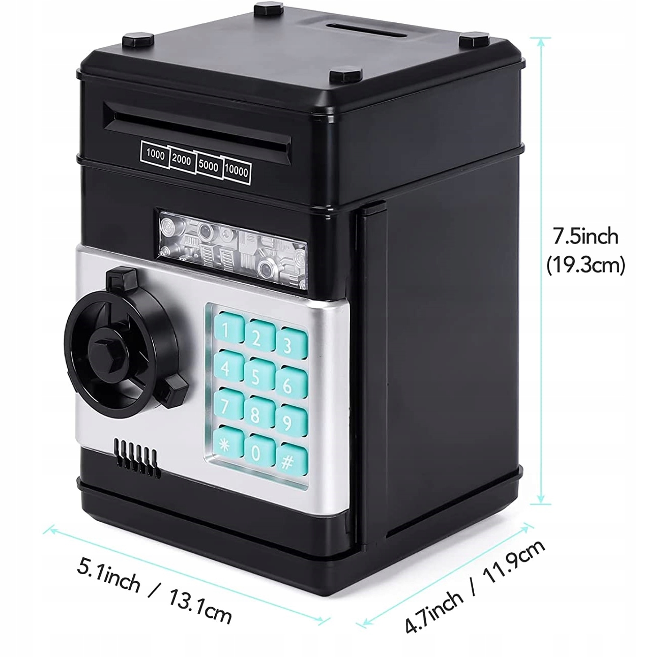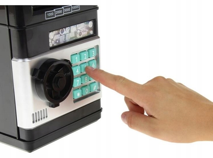 Сейф «проглатывает» купюры, как обычный банкомат, что также доставит массу удовольствия ребенку, когда взрослые «нечаянно» вставят купюру в прорезь для купюр.