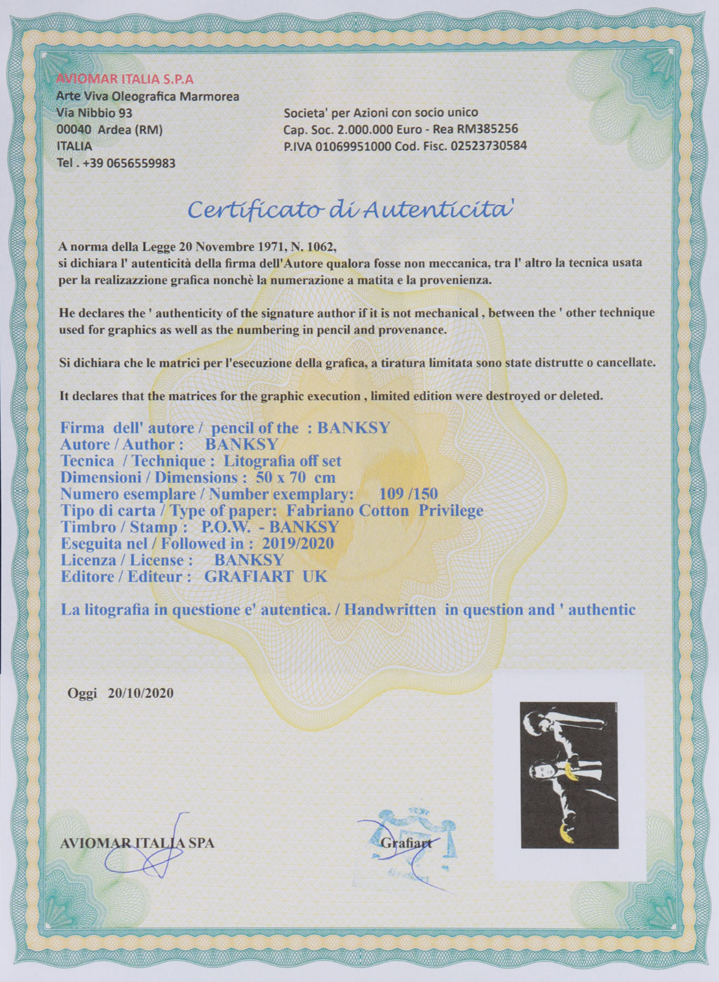 Техника: литография / бумага. Работа подписана в правом нижнем углу. Карандашная циркуляция: 109/150. Aviomar Italia S.P.A Сертификат, прикрепленный к работе.