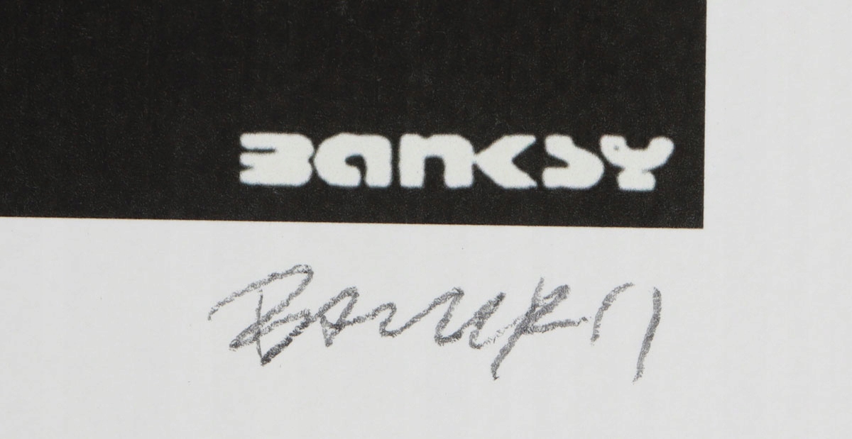 Автор: banksy (настоящее имя и фамилия в соответствии с газетой «The Guardian»: Robert Banks , согласно «Почте в воскресенье»: Робин Ганнингем , согласно другим источникам: Робин Бэнкси , родился в Yate) - Арт -арт. Британский уличный арт. Его работы появляются на улицах Лондона и в других местах по всему миру. Бэнкси использует различные методы для передачи своих сообщений, чаще всего юмористических или связанных с политикой. Его первоначальная форма уличного искусства, сочетающая граффити и характерную технику шаблона, а также смелое и часто очень рискованное место работы, приобрела признание художников и был замечен средствами массовой информации.