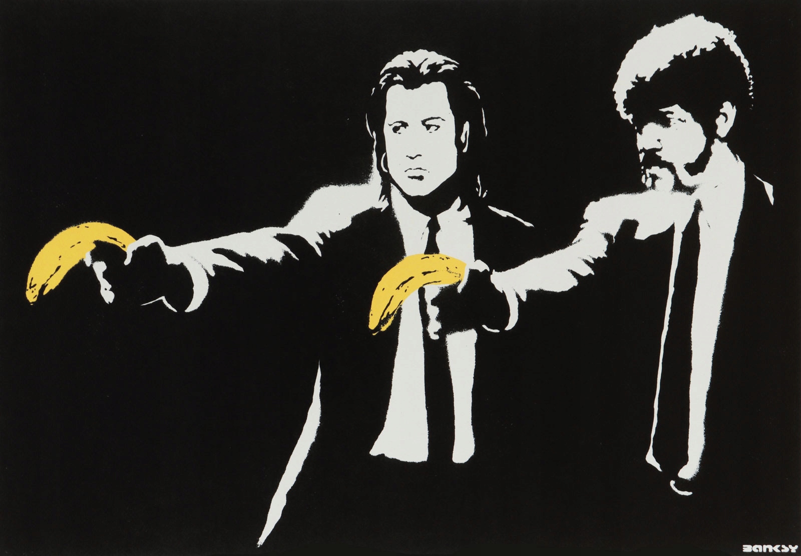 Графика с изображением Джона Траволты и Сэмюэля Л. Джексона держат вместо пистолетов - бананы в руках.