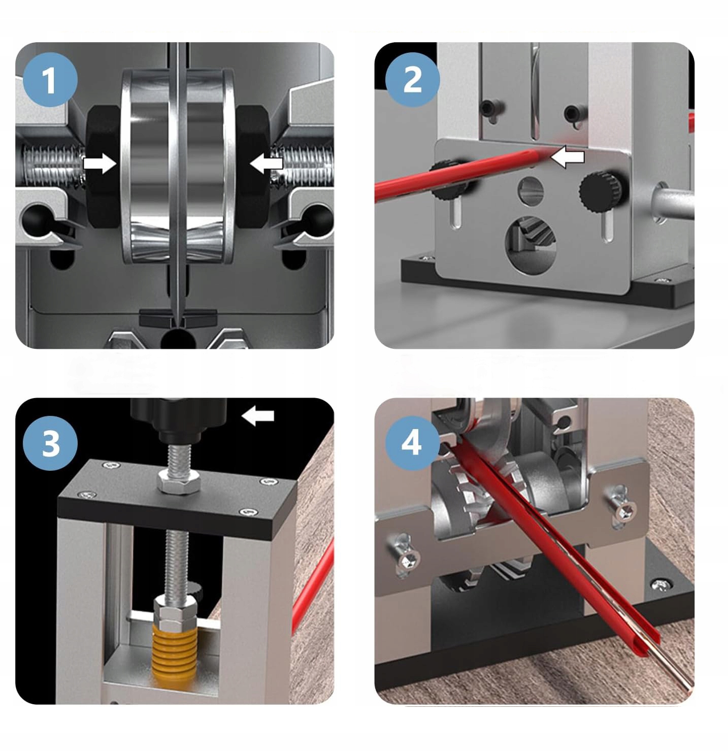 Машина с высокой эффективностью для удаления изоляции из кабелей: Машина с удалением изоляции использует закаленные лезвия сплава, которые обеспечивают длительный срок службы, быстрое удаление изоляции без повреждения вен и легкую работу кабелей разной толщины. Инновационный дизайн V -образной роликовой гида обеспечивает безопасную вставку кабеля без скольжения или скольжения.