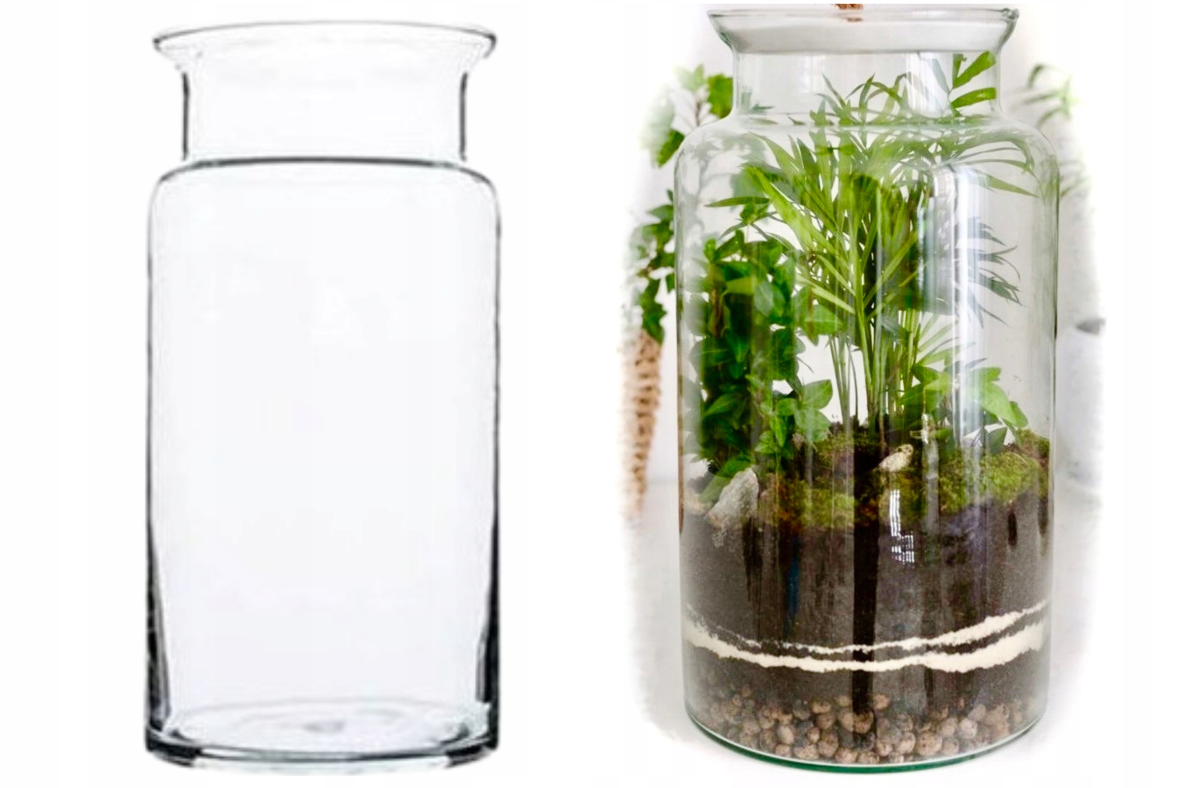 Стеклянная банка – модный, стильный и многогранный сосуд из бесцветного стекла, изготовленный вручную на польском стекольном заводе. Это один из самых популярных шаблонов, с помощью которых можно спроектировать живую экосистему. Посуда для террариума отлично подходит для контроля влажности различных видов миниатюрных растений. Композиции из суккулентов, мха и небольших папоротников, выполненные в такой стеклянной таре, стильны, эстетичны и позволяют соприкоснуться с природой. Это отличная основа для лесов в баночке. Лес в банке – это сад в стакане, который будет долго радовать наш глаз. Декоративная банка идеальна в качестве вазы. Его простая форма привлекает взгляд не только цветочной композицией, но и оригинальным внешним видом, выделяющимся на фоне обычных ваз.