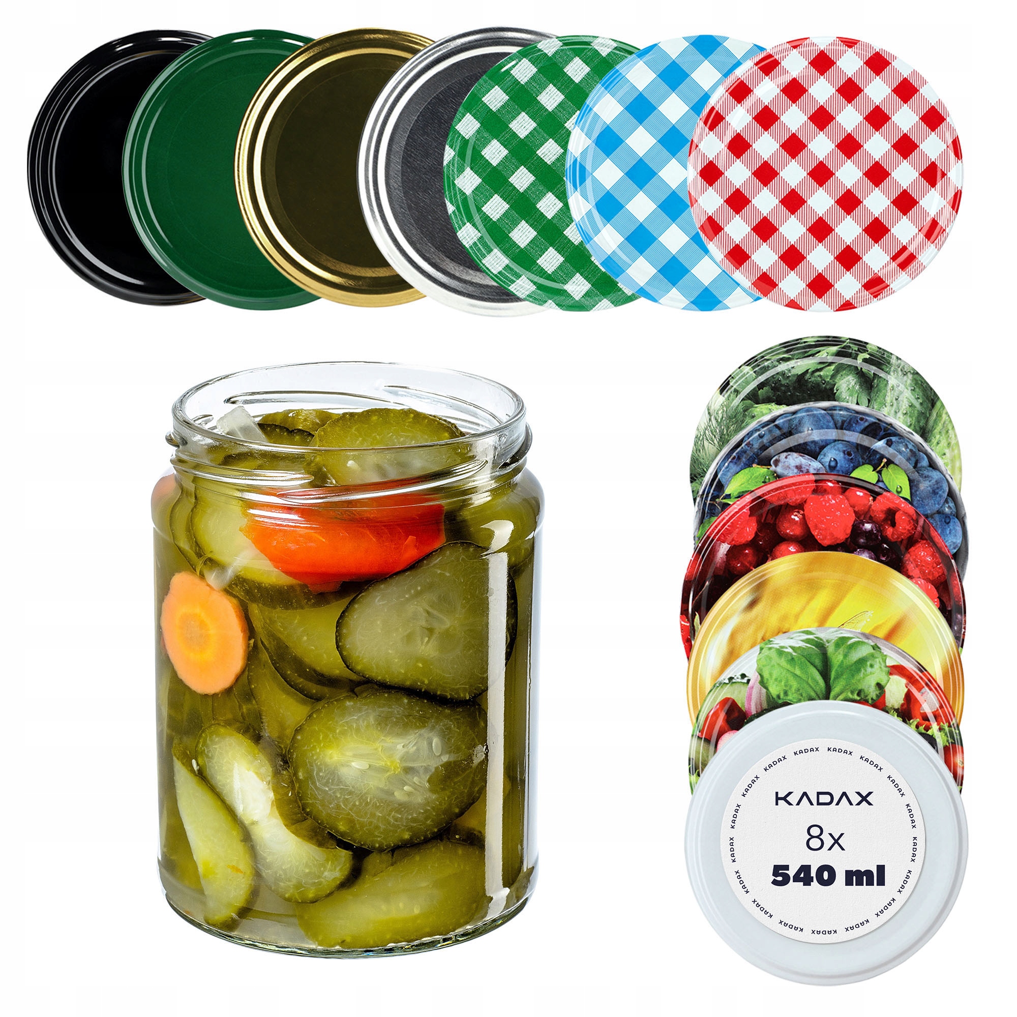 Банка из стеклянных банок 540 мл 500 мл для приготовления пищи 8 ПК + кепки