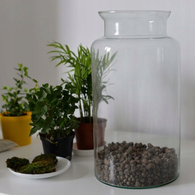 Стеклянная банка – модный, стильный и многогранный сосуд из бесцветного стекла, изготовленный вручную на польском стекольном заводе. Это один из самых популярных шаблонов, с помощью которых можно спроектировать живую экосистему. Посуда для террариума отлично подходит для контроля влажности различных видов миниатюрных растений. Композиции из суккулентов, мха и небольших папоротников, выполненные в такой стеклянной таре, стильны, эстетичны и позволяют соприкоснуться с природой. Это отличная основа для лесов в баночке. Лес в банке – это сад в стакане, который будет долго радовать наш глаз. Декоративная банка идеальна в качестве вазы. Его простая форма привлекает взгляд не только цветочной композицией, но и оригинальным внешним видом, выделяющимся на фоне обычных ваз.