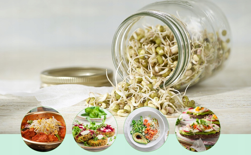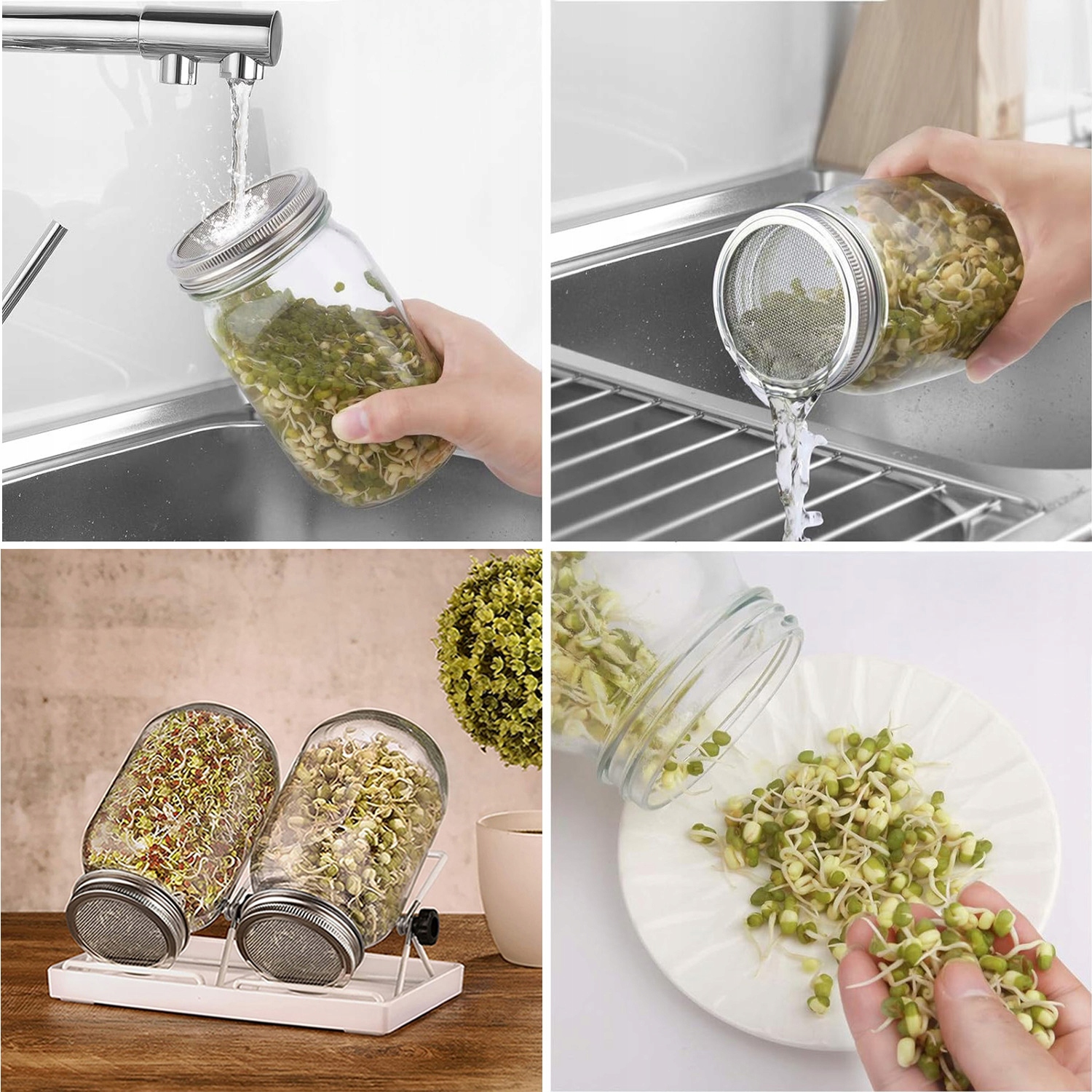 Благодаря двум стеклянным банкам вы можете выращивать разные виды проростков одновременно, наслаждаясь свежими, наполненными витаминами дополнениями к своему ежедневному рациону. еды.