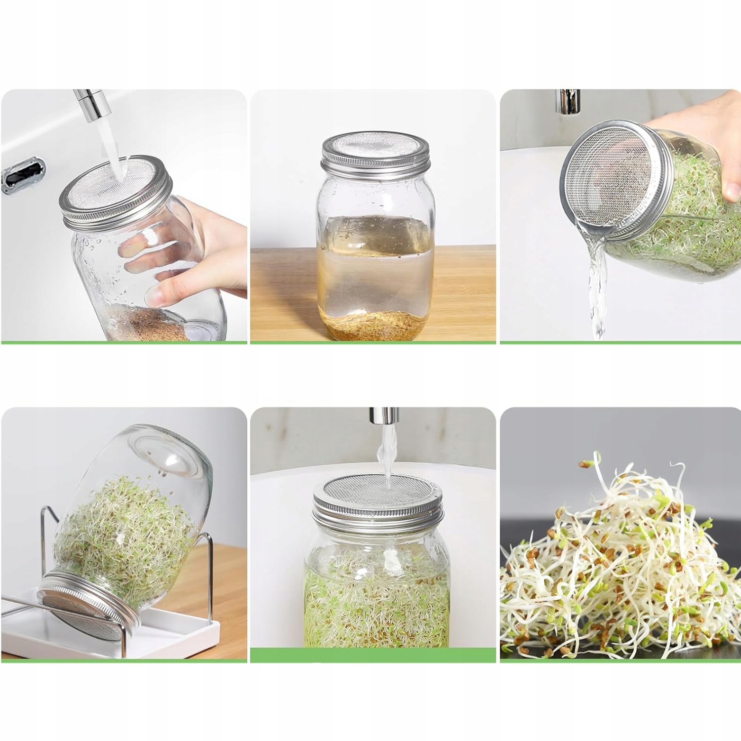 🌱- В комплект входят 2 банки для проращивания с широким горлышком по 1000 мл, 2 крышки, 1 поднос и 2 блюдца из нержавеющей стали (семена в комплект не входят).