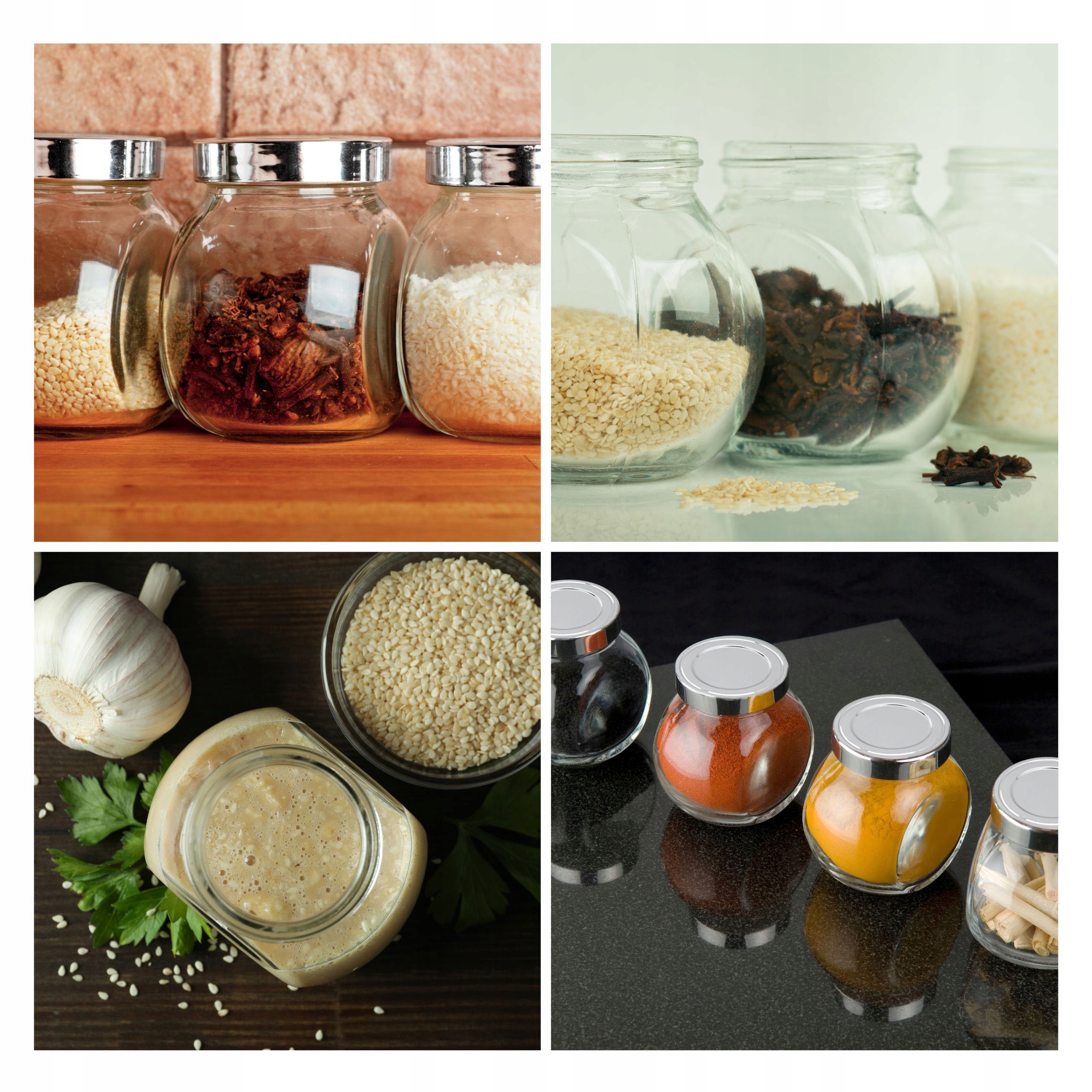 Благодаря компактным размерам (6x8 см) и емкость 190 мл , эти банки идеально подходят для хранения специй, трав, сахара, кофе, чая или даже маленького Beketing . Их стеклянная конструкция позволяет легко идентифицировать контент, а хромированные крышки добавляют элегантный вид