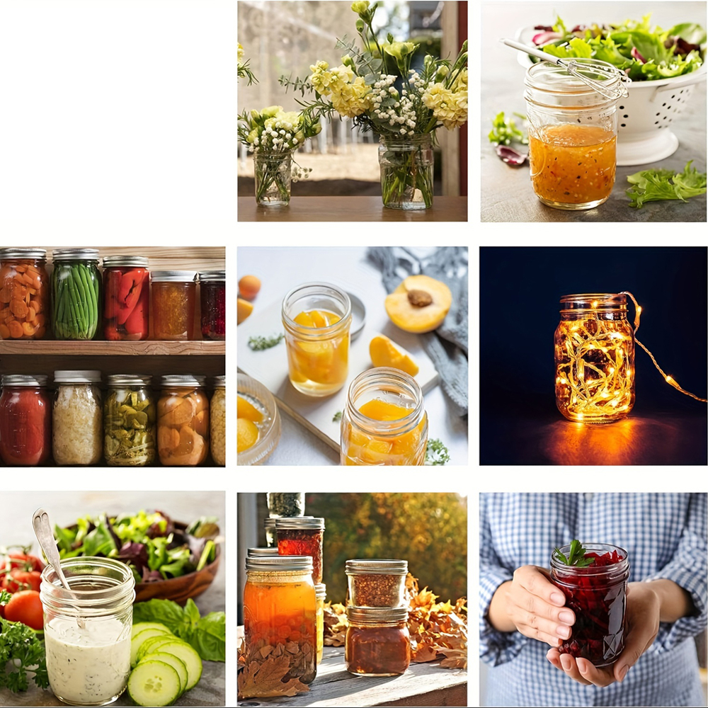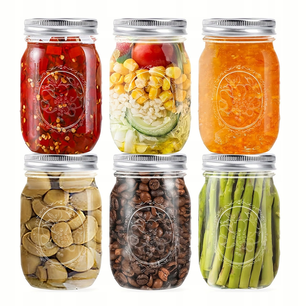 Каждая банка вмещает примерно 470 мл (16 унций). Набор из 6 предметов отвечает различным потребностям – от хранения кофе, орехов, специй до создания домашних десертов и украшений.