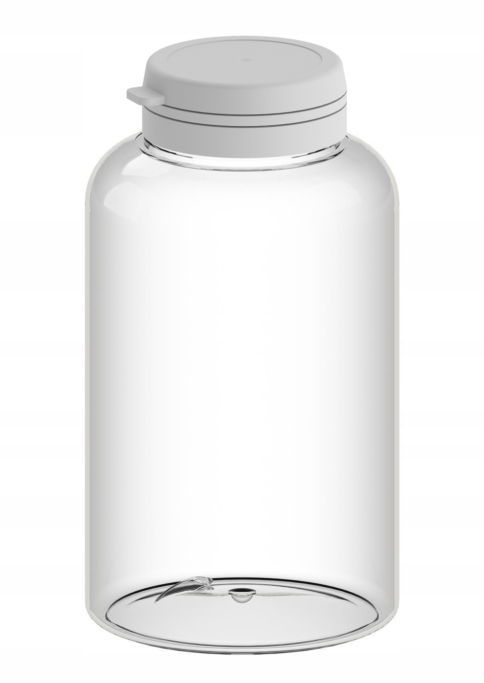 ПЭТ-банка из пластика 300 мл, предназначенная как для продуктов питания, так и для косметики. Идеально подходит для использования в аптеках в качестве контейнера для капсул и таблеток.