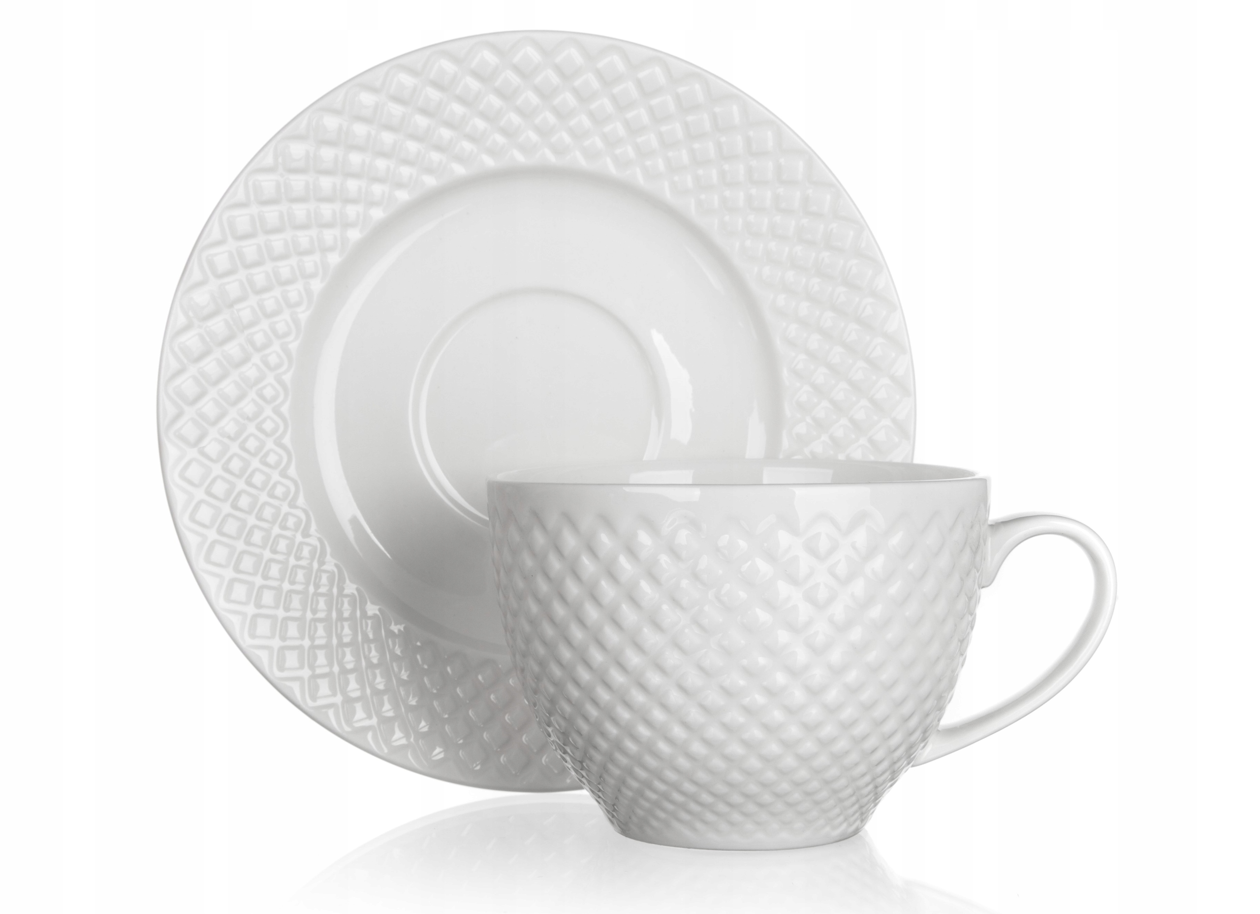 BANQUET FILIŻANKA ZE SPODKIEM 220 ML DIAMOND LINE CERAMICZNA BIAŁA ZESTAW