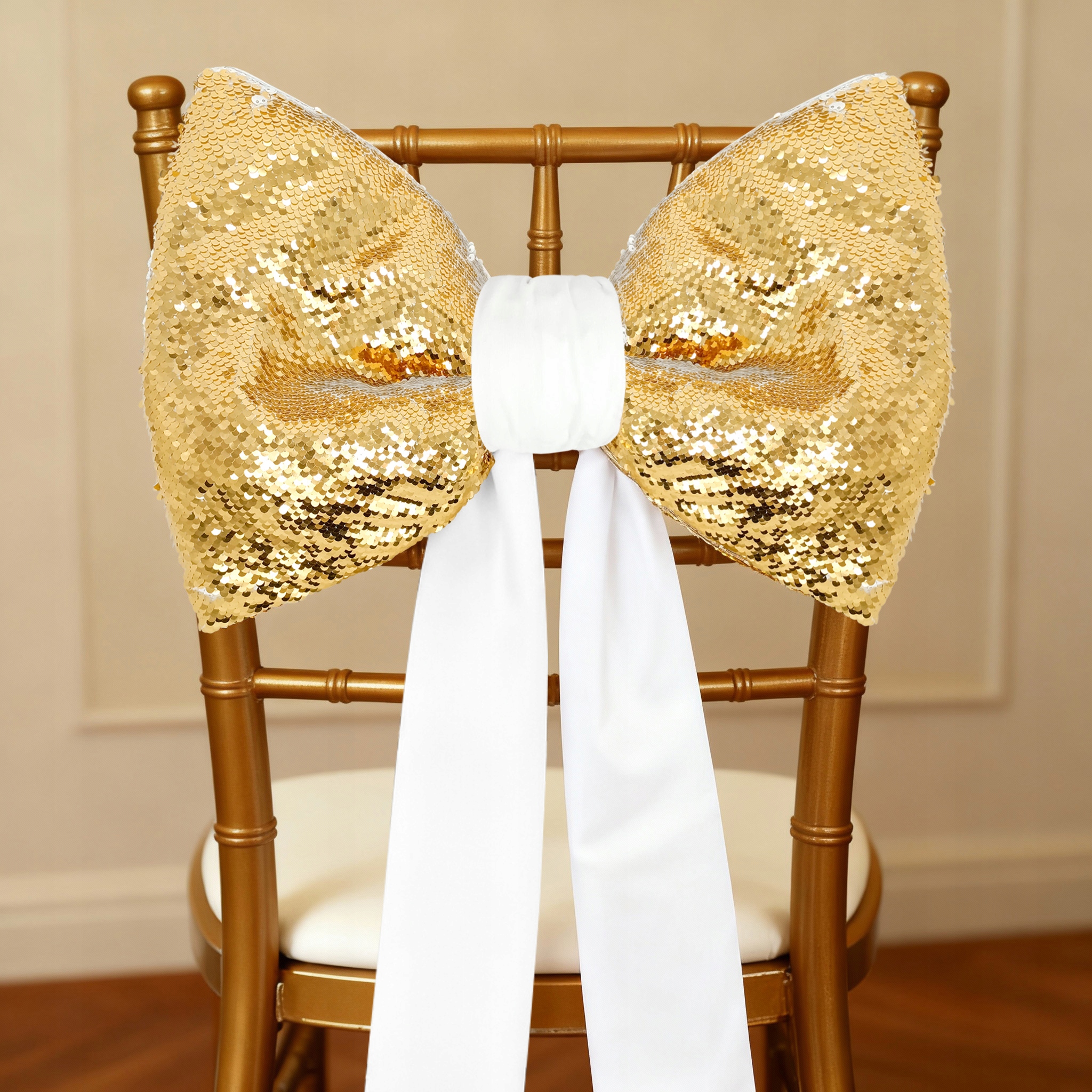 БАНТ 47x60СМ С ПАЙЕТКАМИ, МЕНЯЮЩИМИ ЦВЕТ, БЛОК ЗОЛОТОЙ БЕЛЫЙ ДЕКОРАТИВНЫЙ