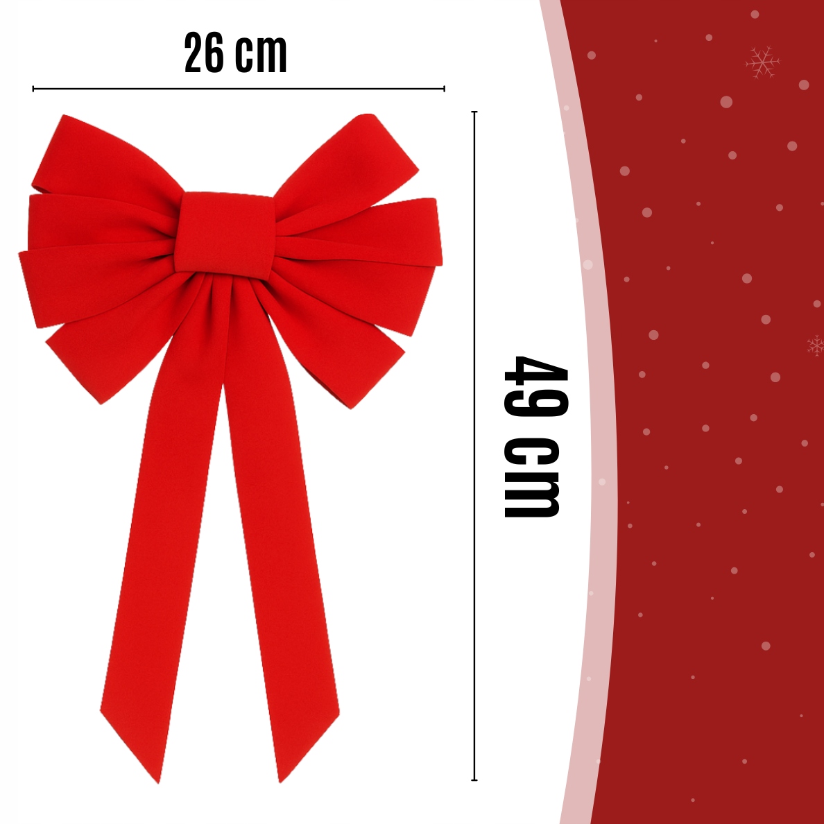 ➡️ ВАЖНОЕ УКРАШЕНИЕ – большой размер банта (49 × 26 см) позволяет ему отлично смотреться на елке, двери или украшении. Его форма придает всему рождественскую элегантность.