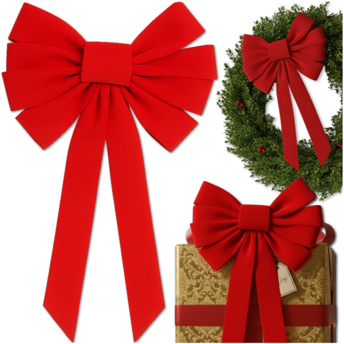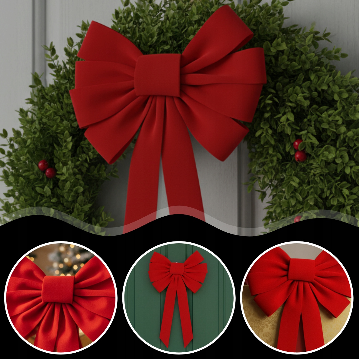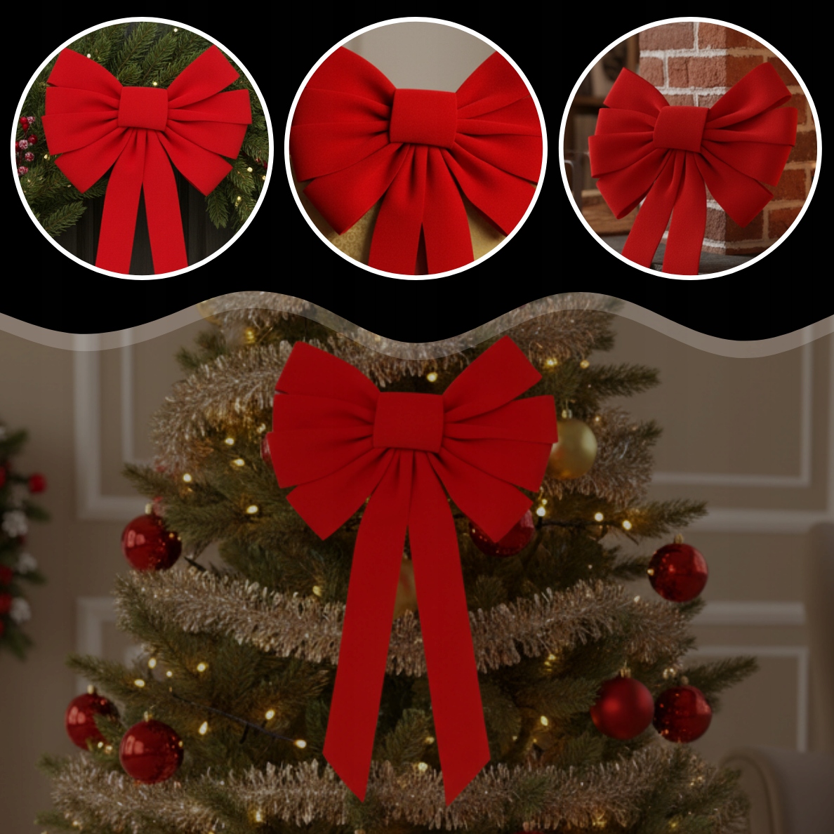 ➡️ УНИВЕРСАЛЬНОЕ ИСПОЛЬЗОВАНИЕ – бант идеален в качестве украшения для елки, украшения, подарка или венка. Вы также можете использовать его для украшения дверей, окон или балюстрад, придавая интерьеру рождественское сияние.