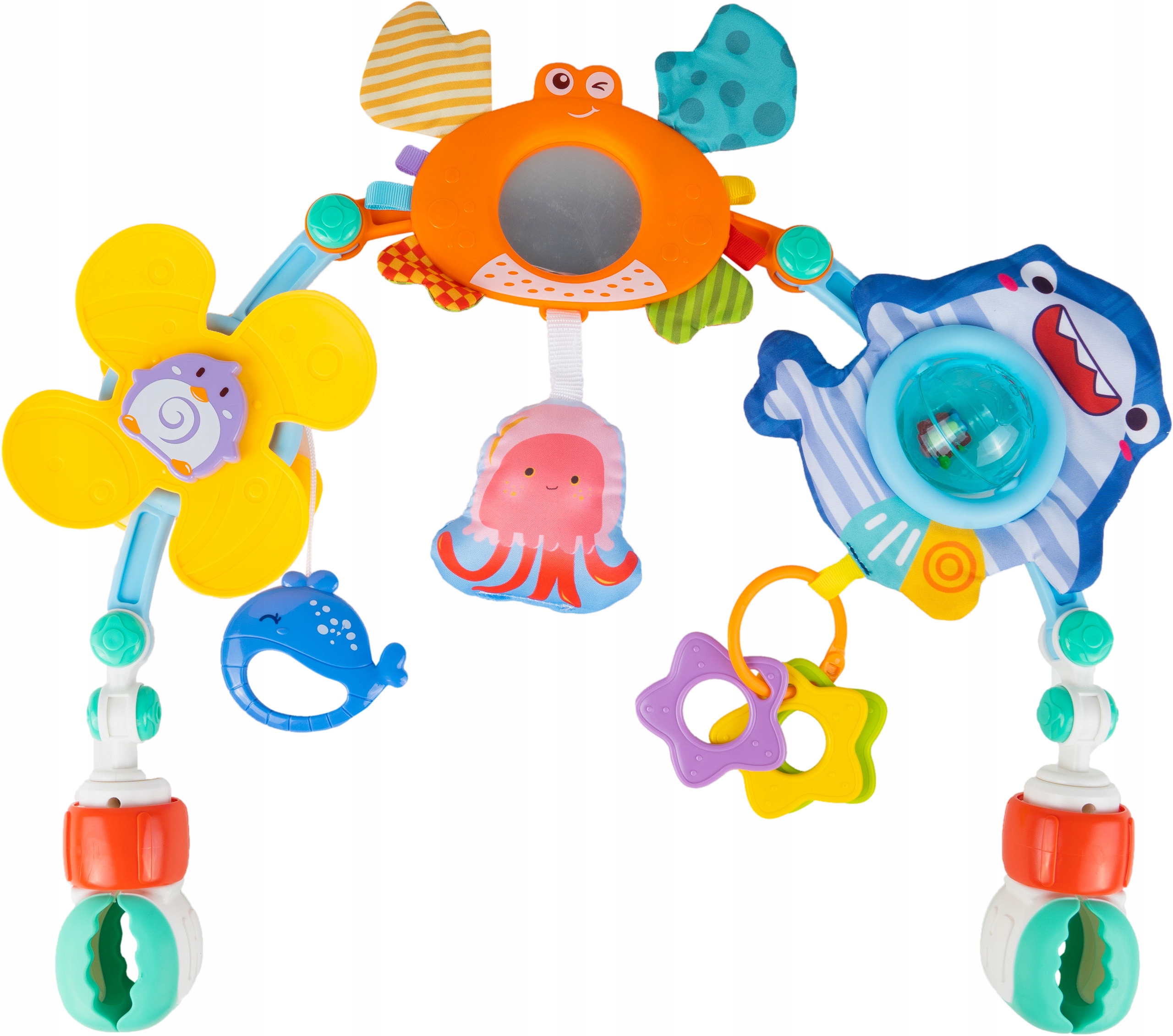 Игрушка привлекает внимание и поддерживает активность и любопытство ребенка в коляске или автокресле. Предназначен для развития движений всего тела и воздействия на органы чувств.