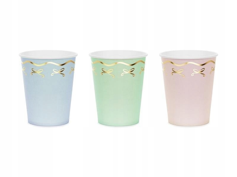 Бумажные стаканчики с бантиками, упакованные в комплекты по 2 шт., цветов: синий, зеленый и розовый, вместимость ок. 220 мл (7,4 унции). Продукт одноразового использования. Не используйте для горячих напитков. Стаканчики для напитков имеют маркировку, требуемую Регламентом Комиссии (ЕС) 2020/2151 от 17 декабря 2020 года о маркировке одноразовых пластиковых изделий. Изделие содержит этикетки на следующих языках: польском, немецком, чешском, французском, голландском, словацком, словенском и болгарском. (1 упаковка/6 шт)