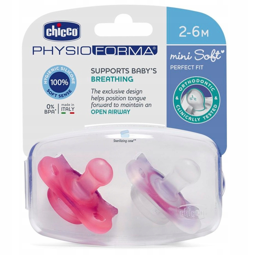 Мягкая пустышка Chicco PhysioForma Mini 2–6 мес, розовая
