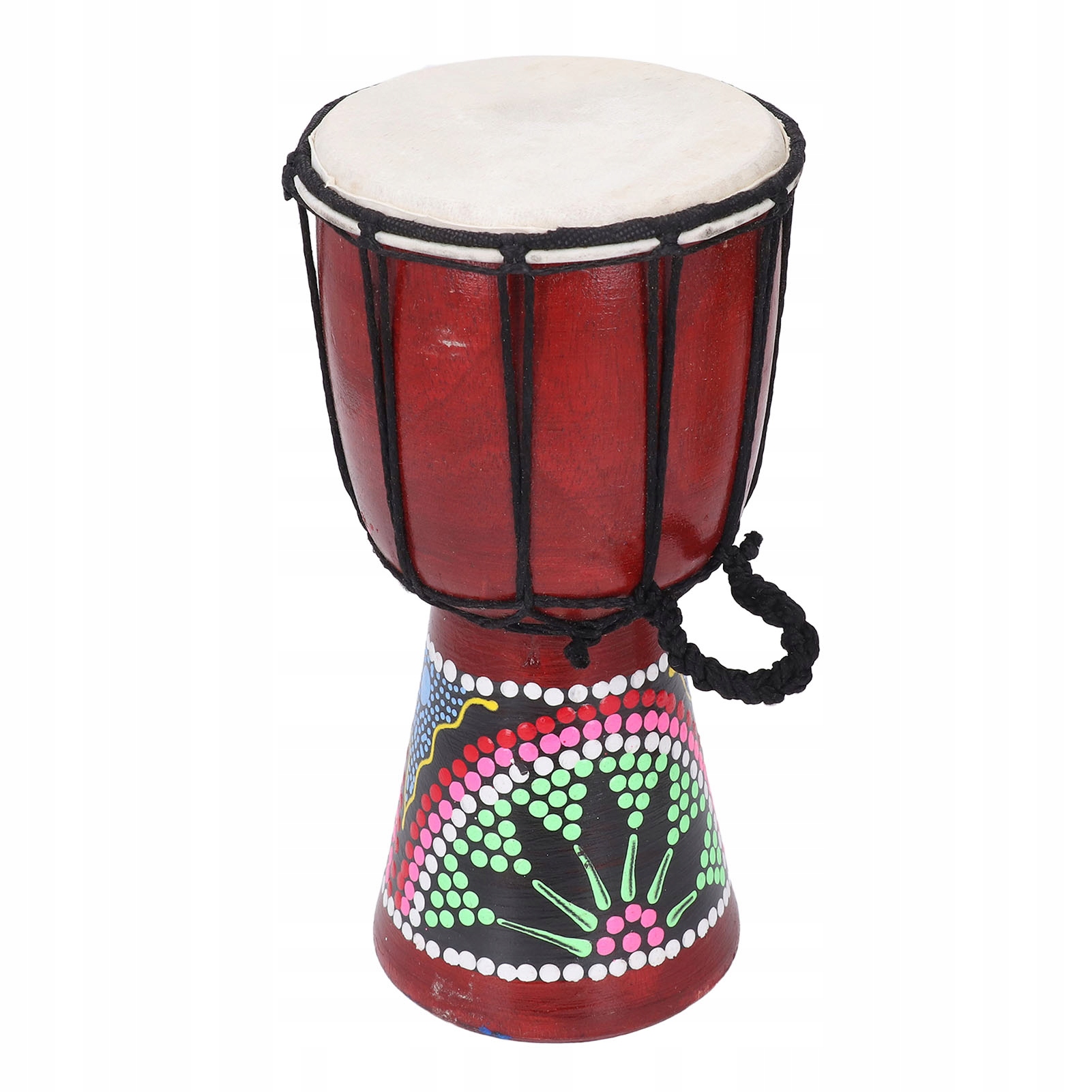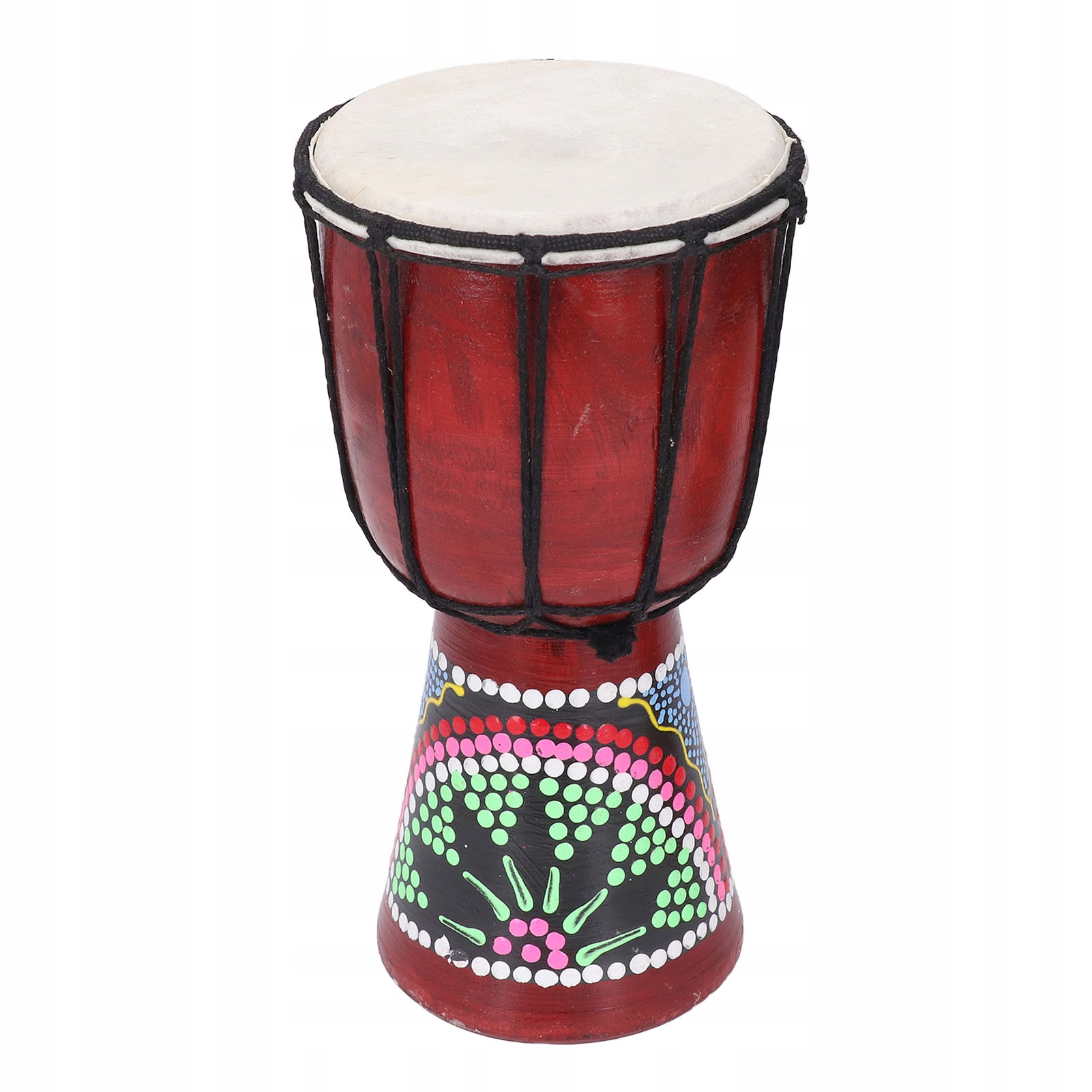 Барабан джембе 4-дюймовый красного цвета, расписанный вручную классическим рисунком ZJ