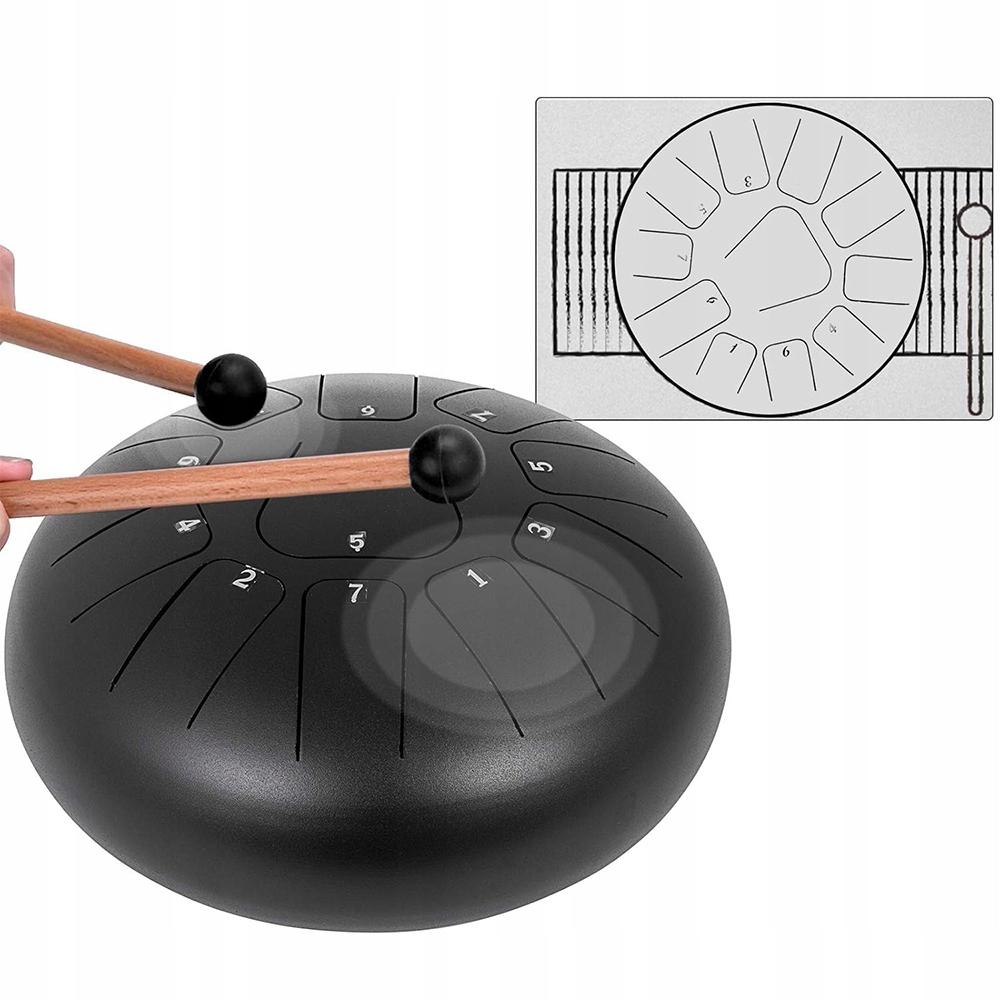 ✅ Bogate аксессуары: Комплексные покупки для всех ваших потребностей. Весь набор барабанов включает в себя стальной барабан, транспортный пакет, корпус для 6 пальцев, 2 барабанных палочки, ноутбук и 2 наклейки с числами шлифов
