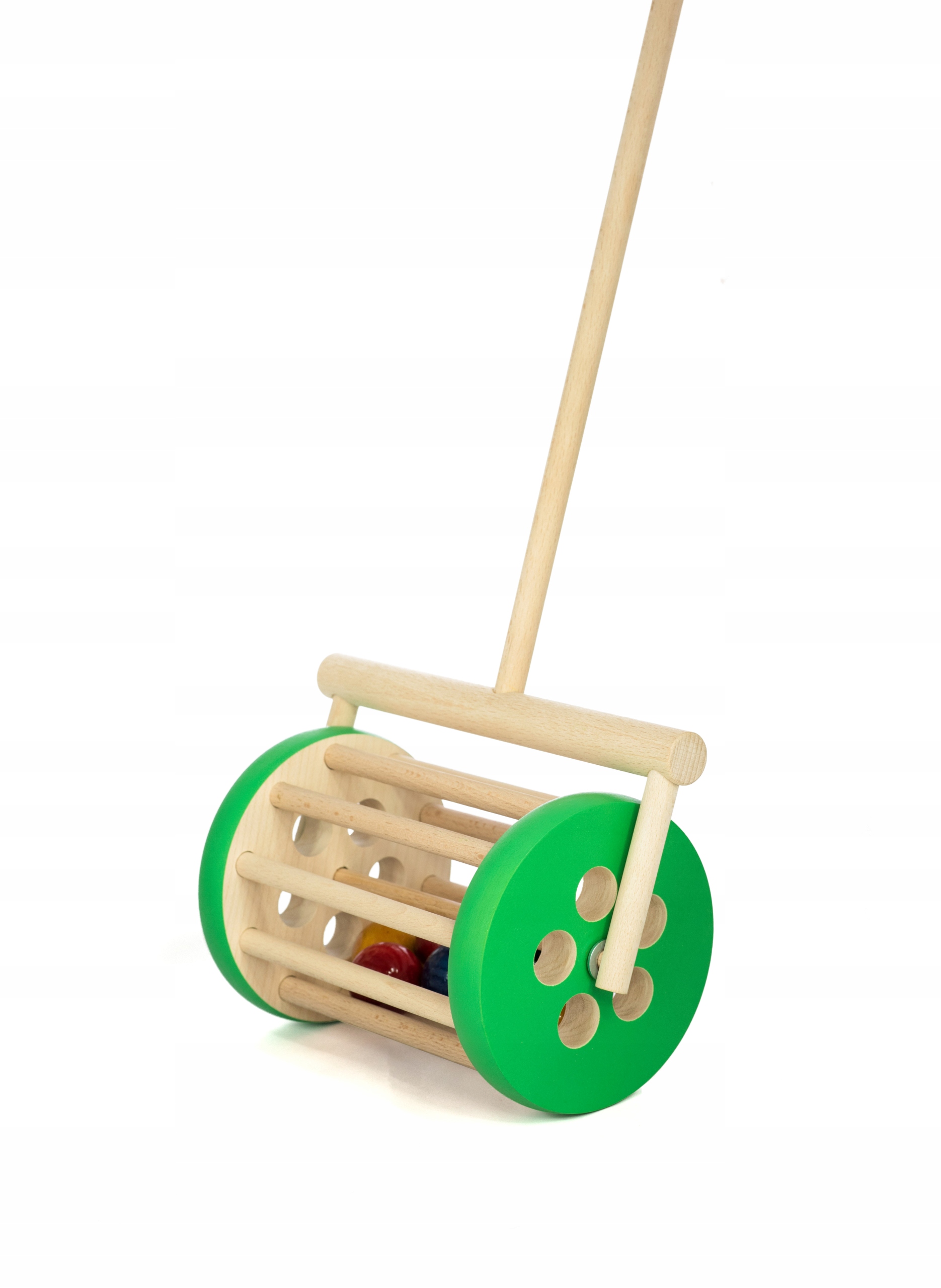 Деревянный барабан с шариками-толкателями - зеленый