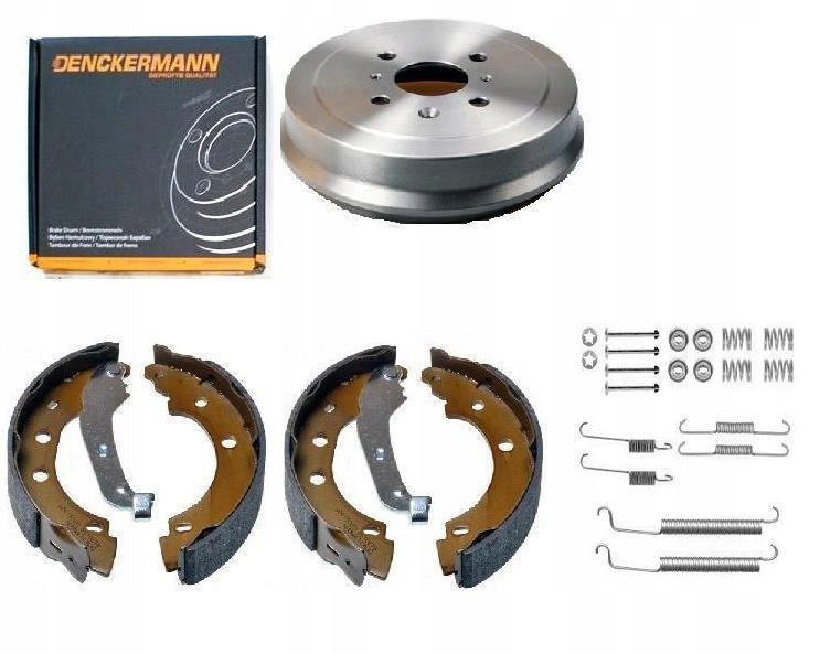 НАБОР ТОРМОЗНЫХ БАРАБАНОВ ОТ MIKODA И ТОРМОЗНЫХ КОЛОДОК ОТ DENCKERMANN И УСТАНОВОЧНЫЙ КОМПЛЕКТ ДЛЯ КОЛОДОК.